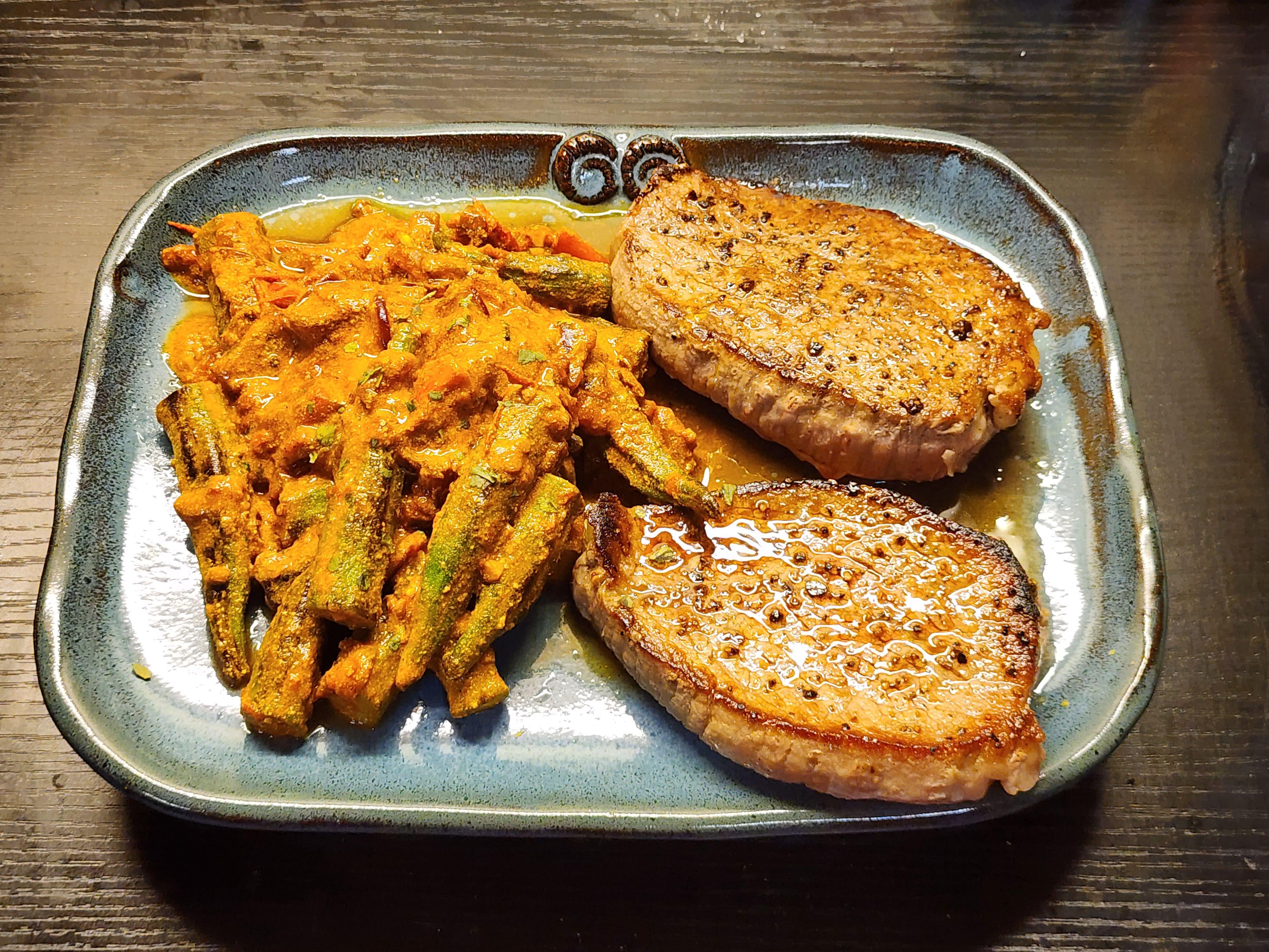 Two Eye Of Round Steaks With A Side Of Bhindi Masala (Okra Curry) — 630 Cal by InTheDarknesBindThem 1500 Calorie 1500 Calorie Diet 1500 Calorie Meal Plan 1500 Kcals 1500 Kcals a day 1500 Kcals per day 1500 Kilocalorie 1500 Kilocalorie a day 1500 Kilocalorie per day 1500isplenty