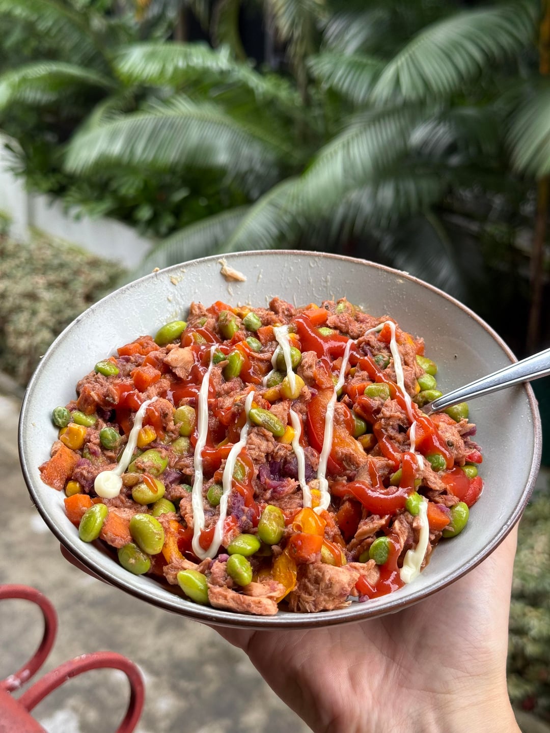 Lunch is edamame/veggie mix/tuna with low fat cheese and enchilada seasoning.