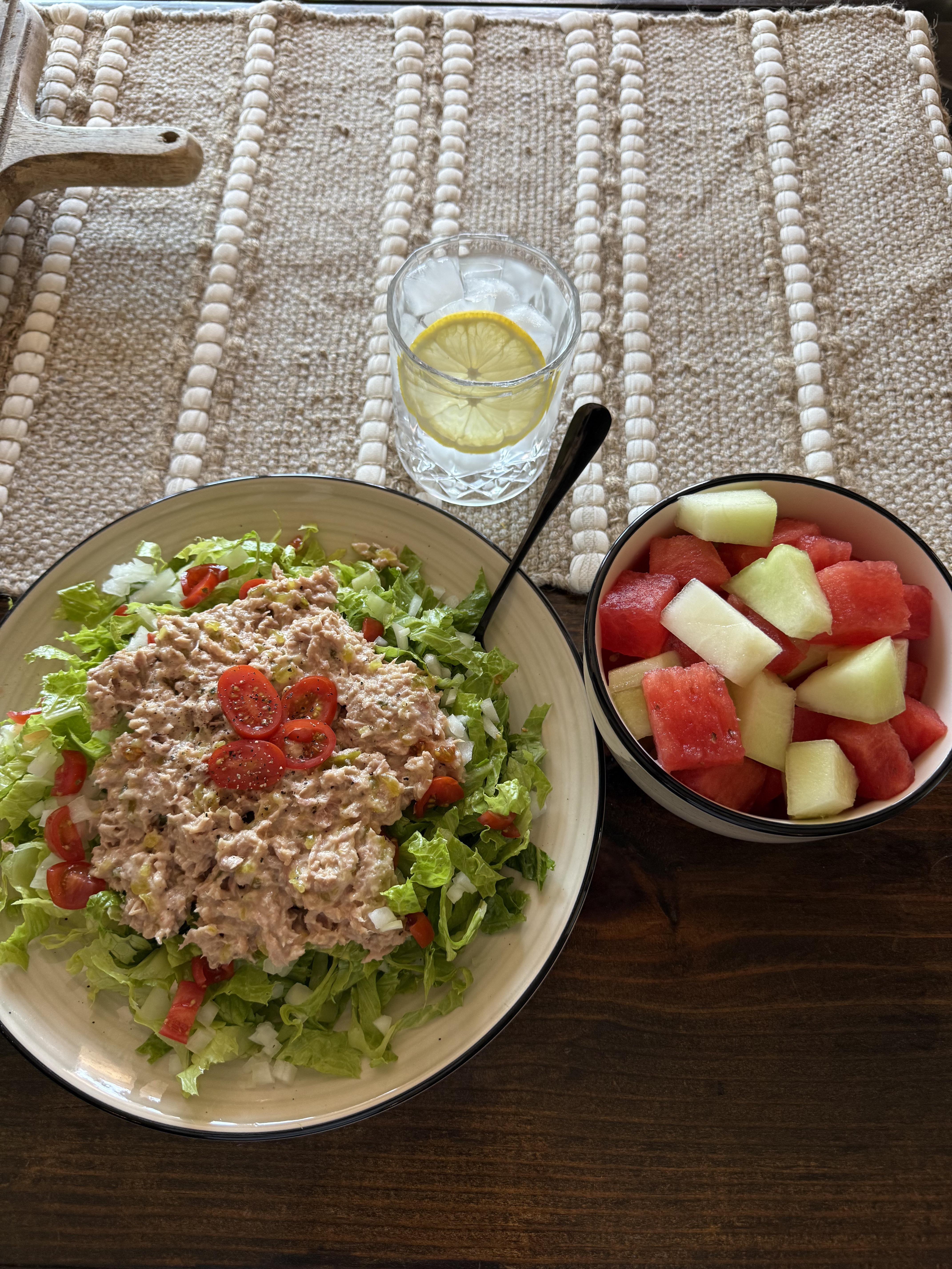 It’s tuna salad salad with fruit salad.