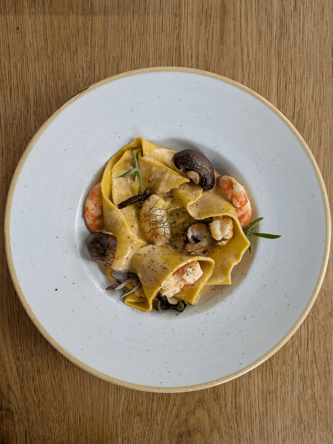 Edit: if you don’t like the criticism then get off the “line”. This dish is titled prawn pappardelle. Not pappardelle with mushrooms and prawns. Highlight the protein.