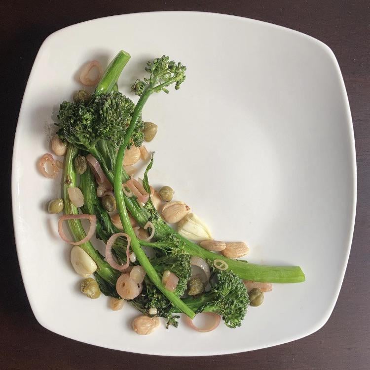 Broccolini with pickled garlic, almonds, shallots and capers by Hopeful_Branch1565 Culinary Culinary Plating
