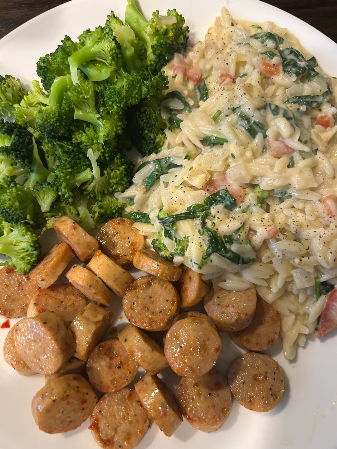 Dinner-chicken sausage, broccoli, and orzo in a Tuscan cream sauce. 550 cals by novascotia3898 1500 Calorie 1500 Calorie Diet 1500 Calorie Meal Plan 1500 Kcals 1500 Kcals a day 1500 Kcals per day 1500 Kilocalorie 1500 Kilocalorie a day 1500 Kilocalorie per day 1500isplenty