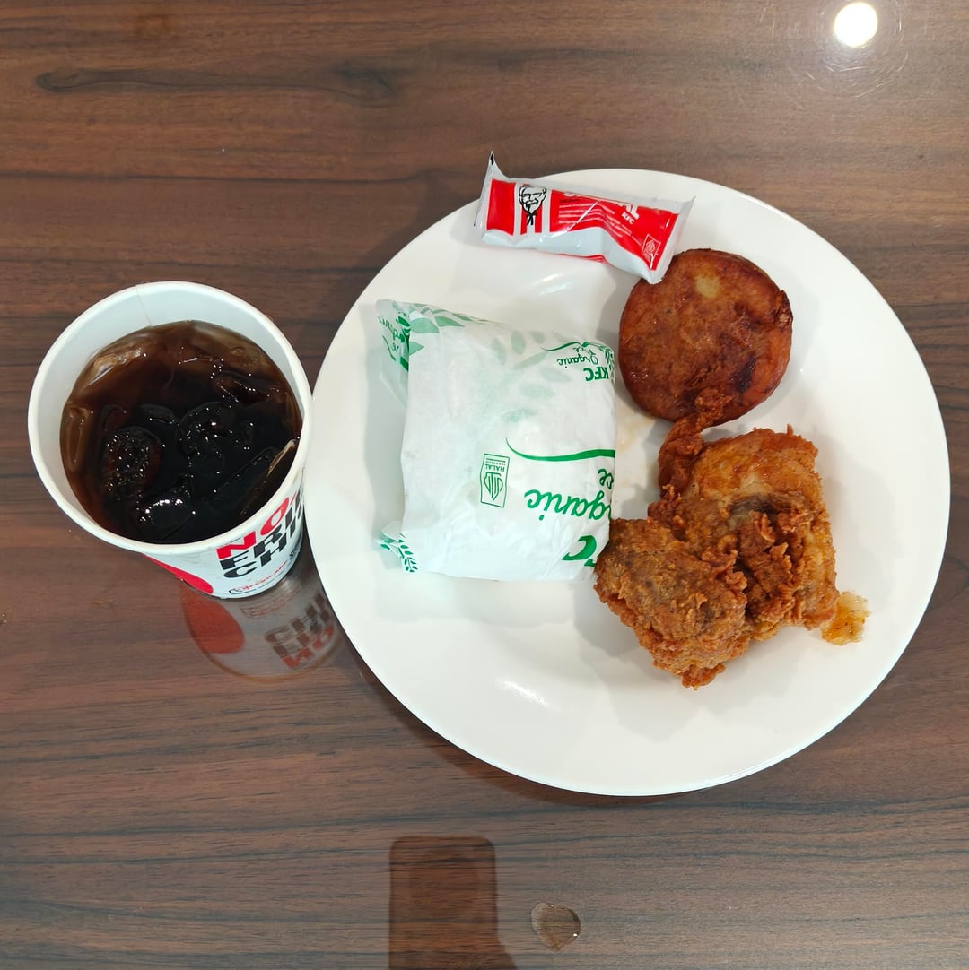 KFC Breasg, Rice, And Perkedel (Potato Cake)