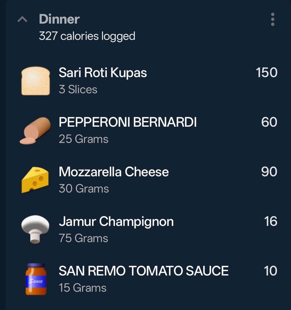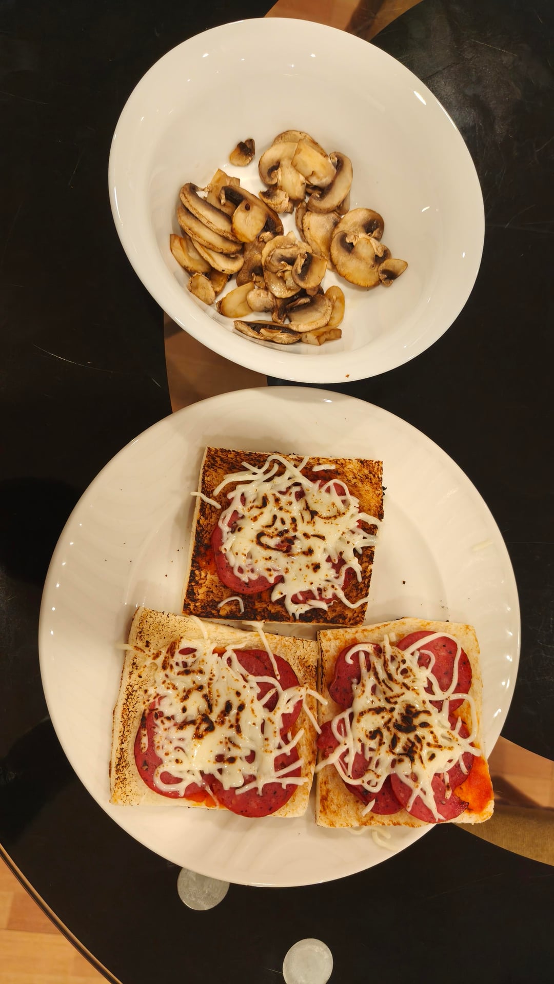 3 slices 50 cal breas, tomato pasta sauce, peperoni, 30g mozarella, mushrooms on the side