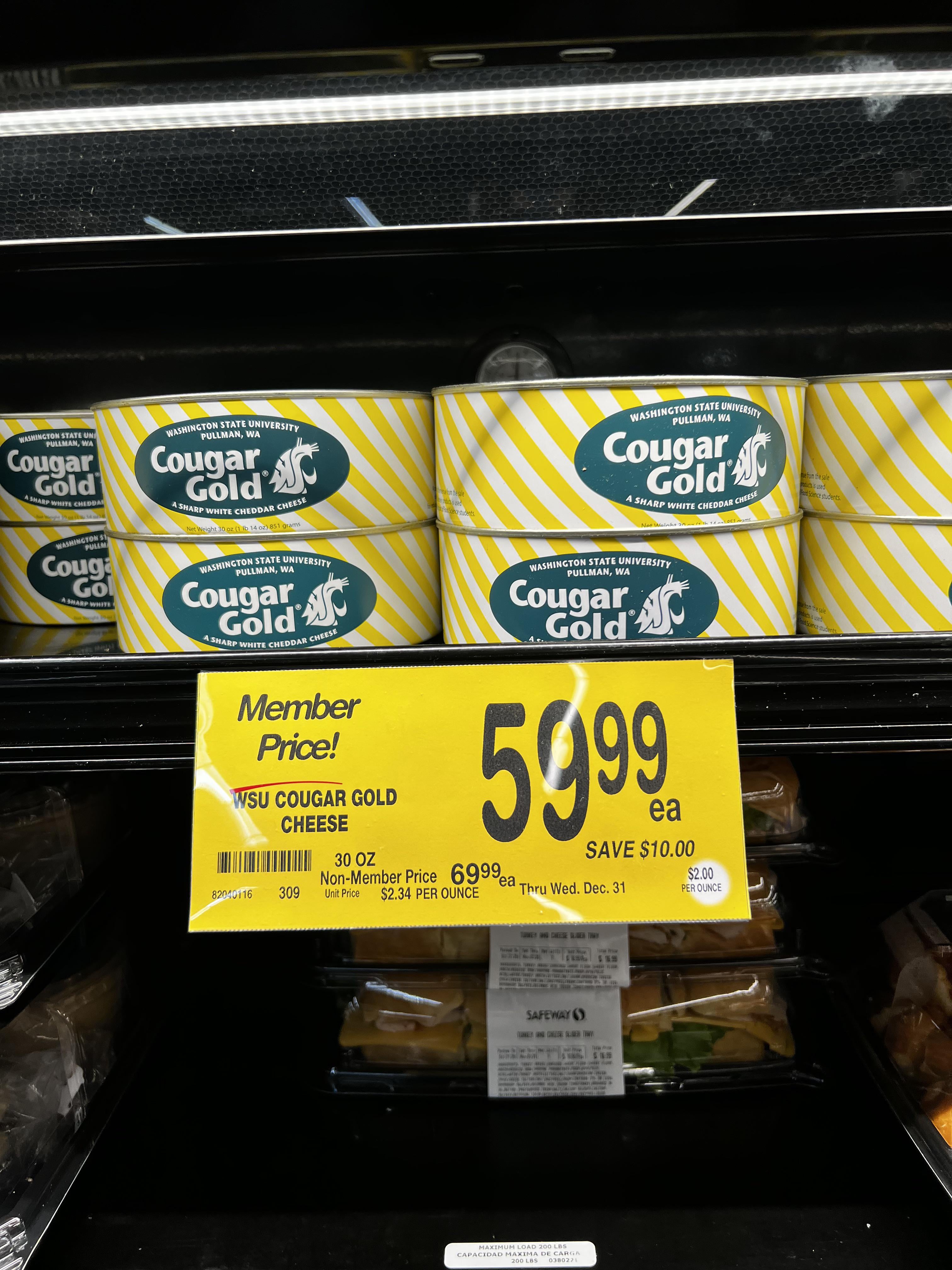 The only time I buy Cougar Gold at a grocery store is when the cheese counter has opened a can and is selling wedges of it.