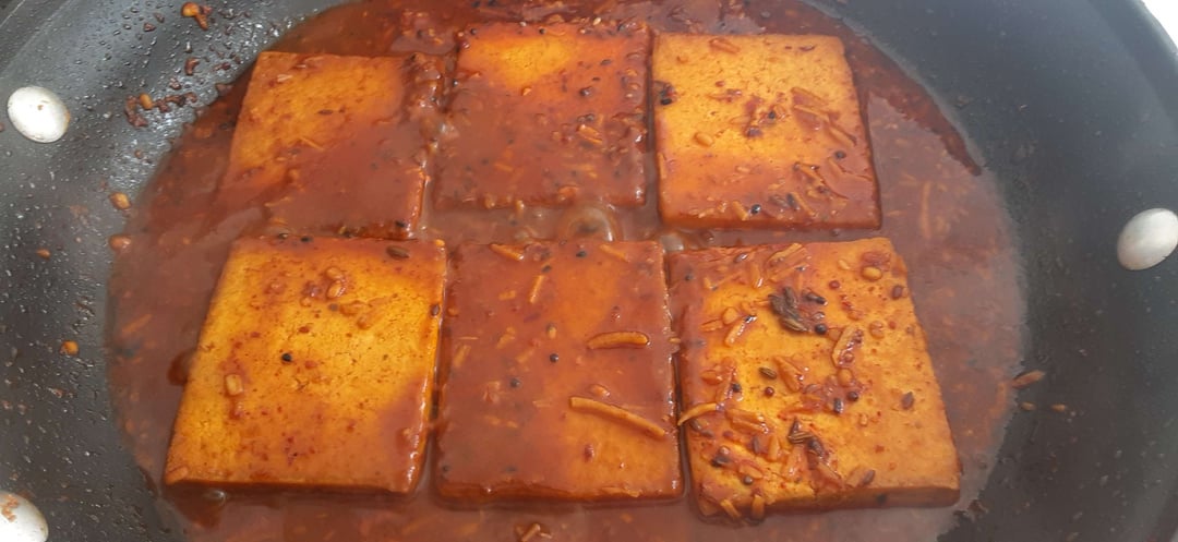 **Spicy Coconut Tofu** (an Indian spin on Dubu-Jorim / Korean Spicy Braised Tofu)