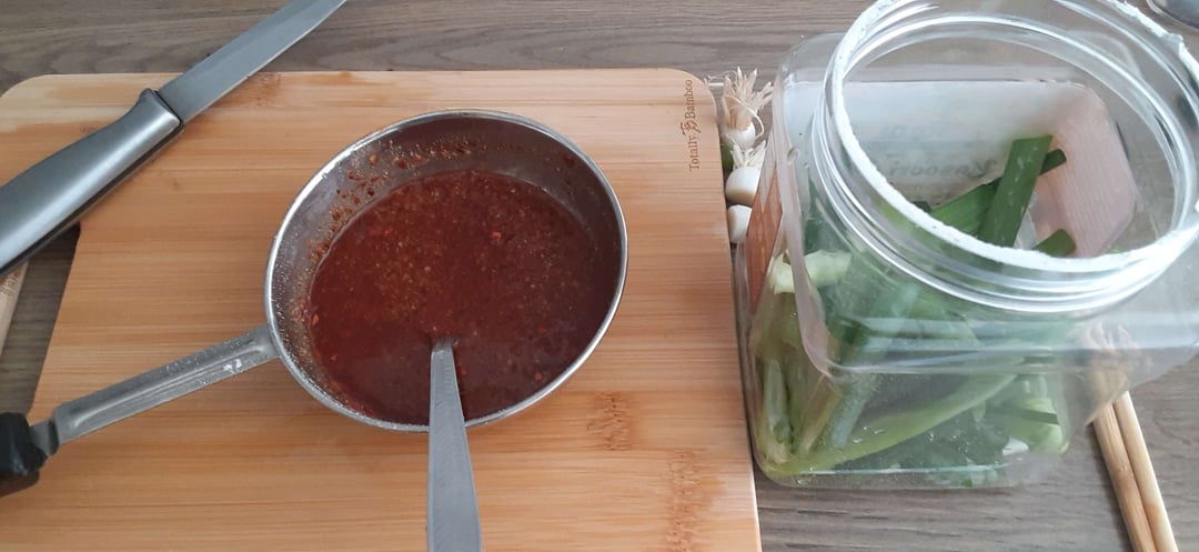 – [Scallion Kimchi](https://www.koreanbapsang.com/pa-kimchi-green-onion-kimchi/) (vegan option midway down the page)