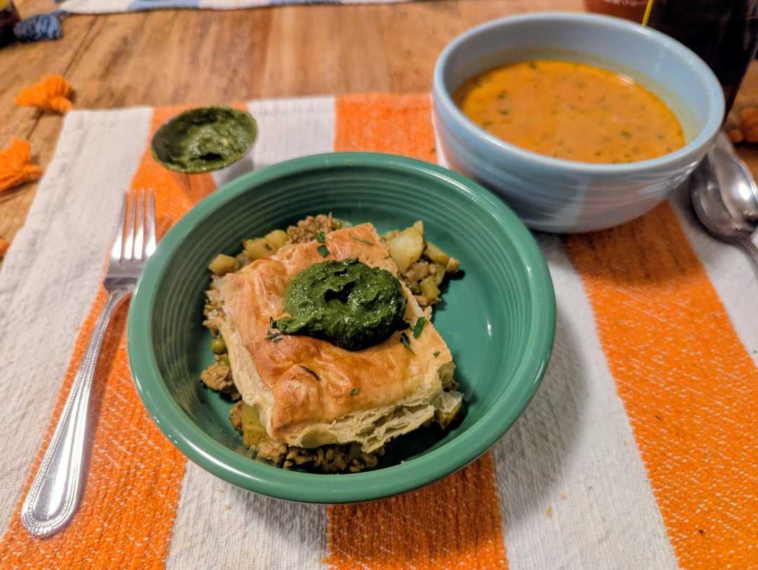Samosa pie with a side of spicy tomato shorba 🔥 by Dusty_Old_McCormick Dinner Tonight Tonight's Dinner