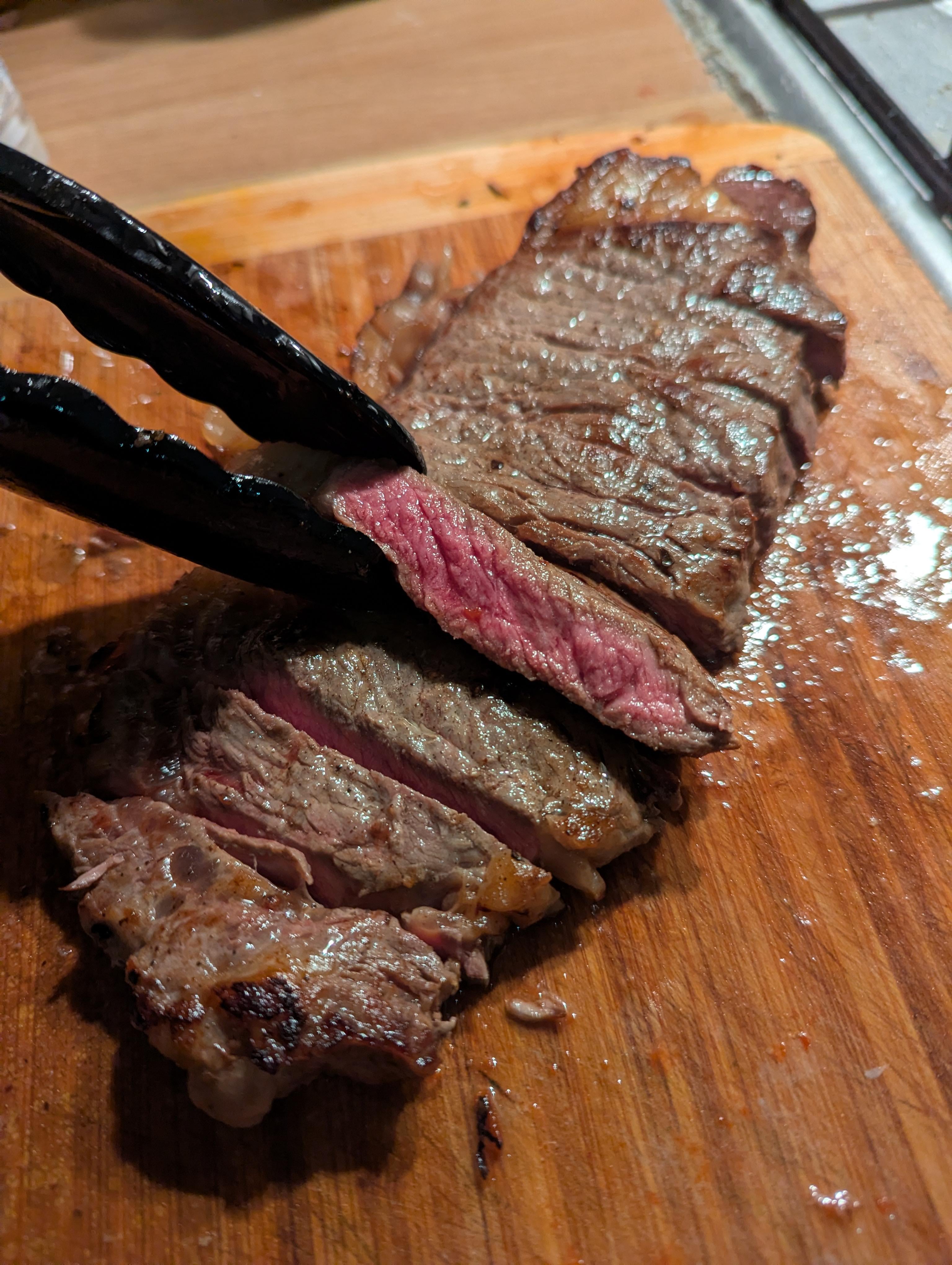 Could the crust be better? Yes. However, the thickness of this steak makes it challenging to have a good crust while also keeping the inside rare/medium-rare. Thinner steaks will start to overcook faster.