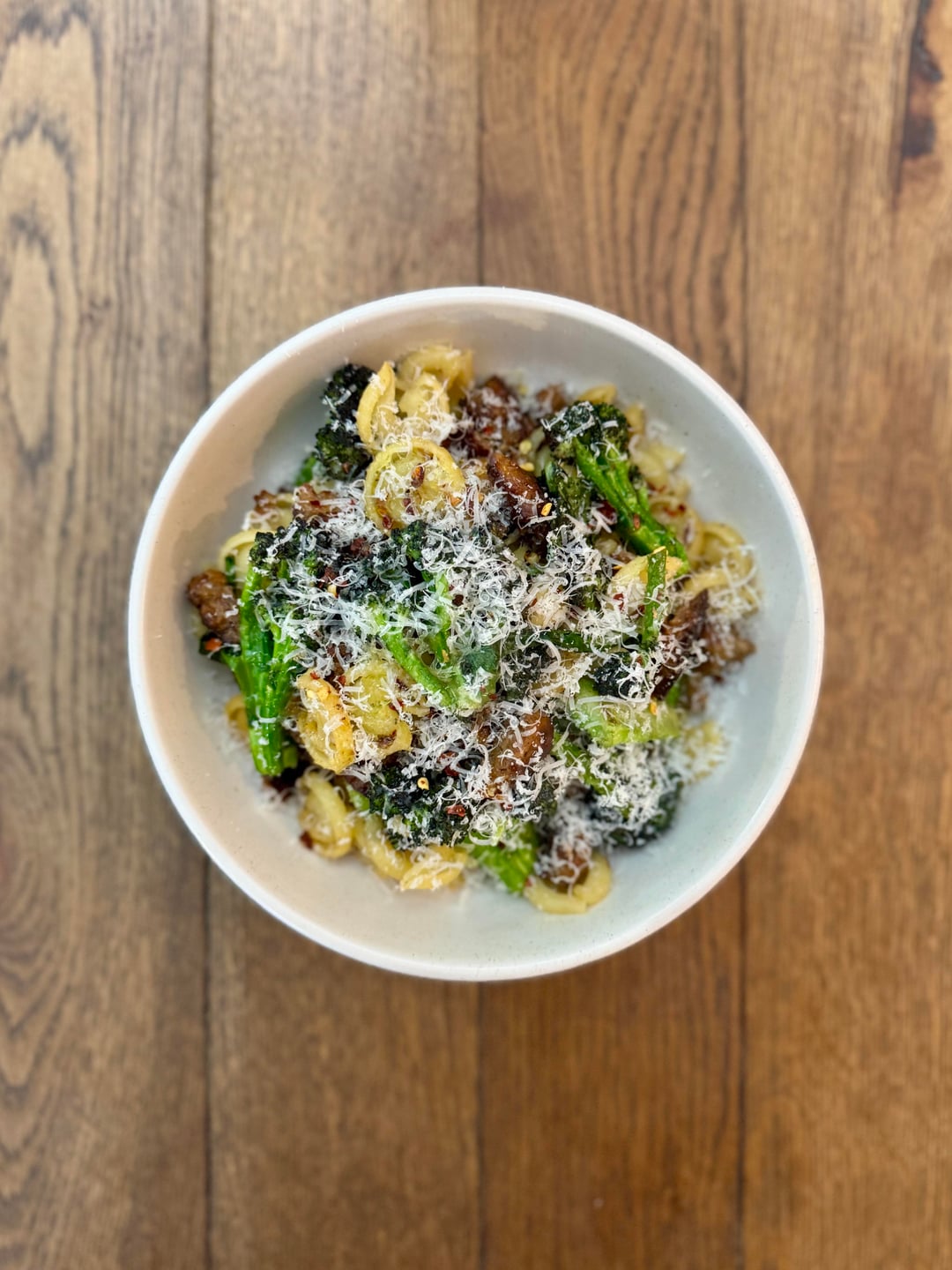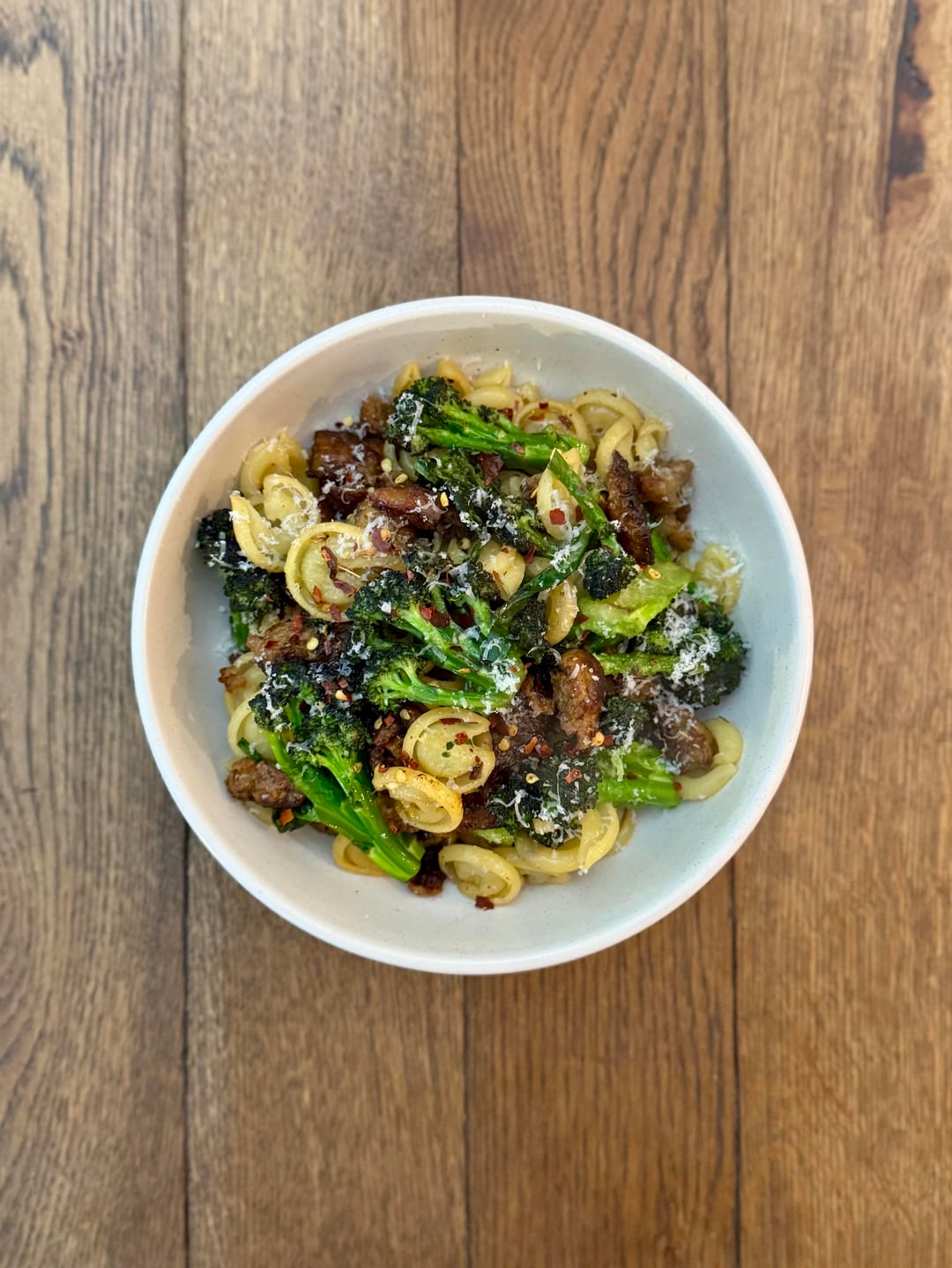 Edit: this actually isn’t orecchiette! I forgot. I didn’t have any in the cupboard so I used messicani. It’s similar but it’s not orecchiette.