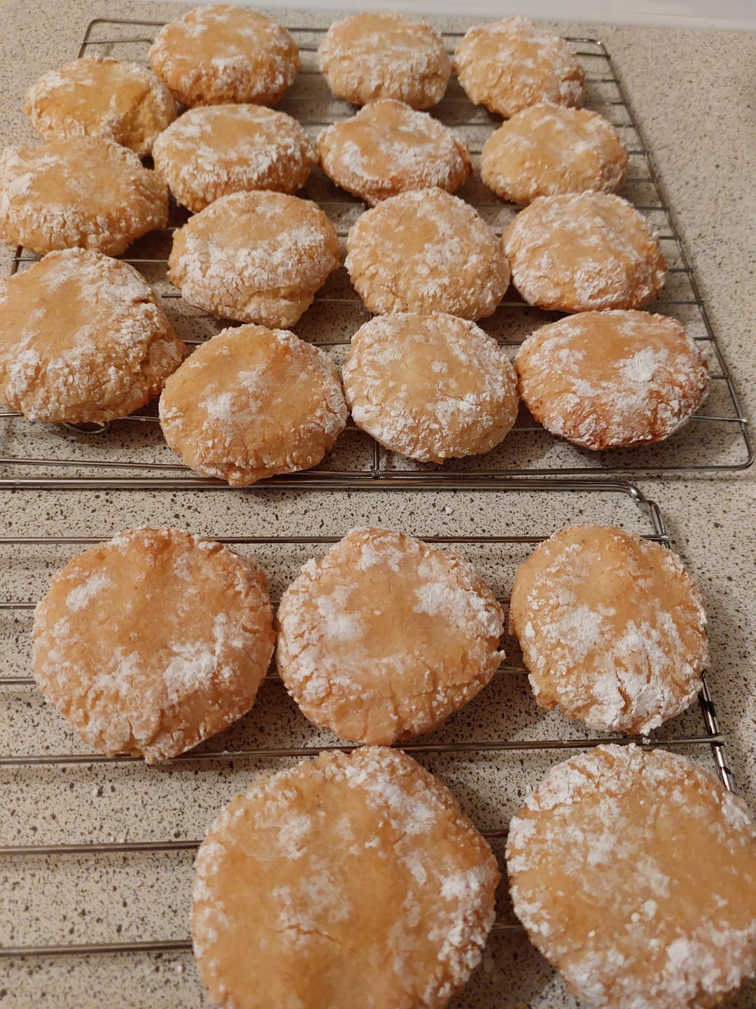 5. Bake for 25 minutes, until the biscuits are just firm, cracked and starting to turn pale golden in colour.
