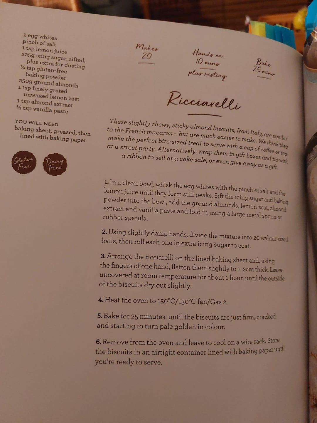 1. In a clean bowl, whisk the egg whites with the pinch of salt and the lemon juice until they form stiff peaks. Sift the icing sugar and baking powder into the bowl, add the ground almonds, lemon zest, almond extract and vanilla paste and fold in using a large metal spoon or rubber spatula.