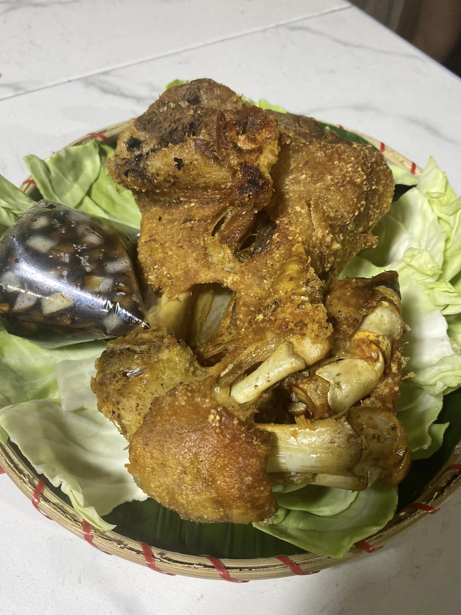 Crispy Pata [OC] golden-fried pork leg with a perfect crunchy skin and tender meat, served on fresh cabbage with soy-vinegar dip. Filipino comfort food at its crispiest!