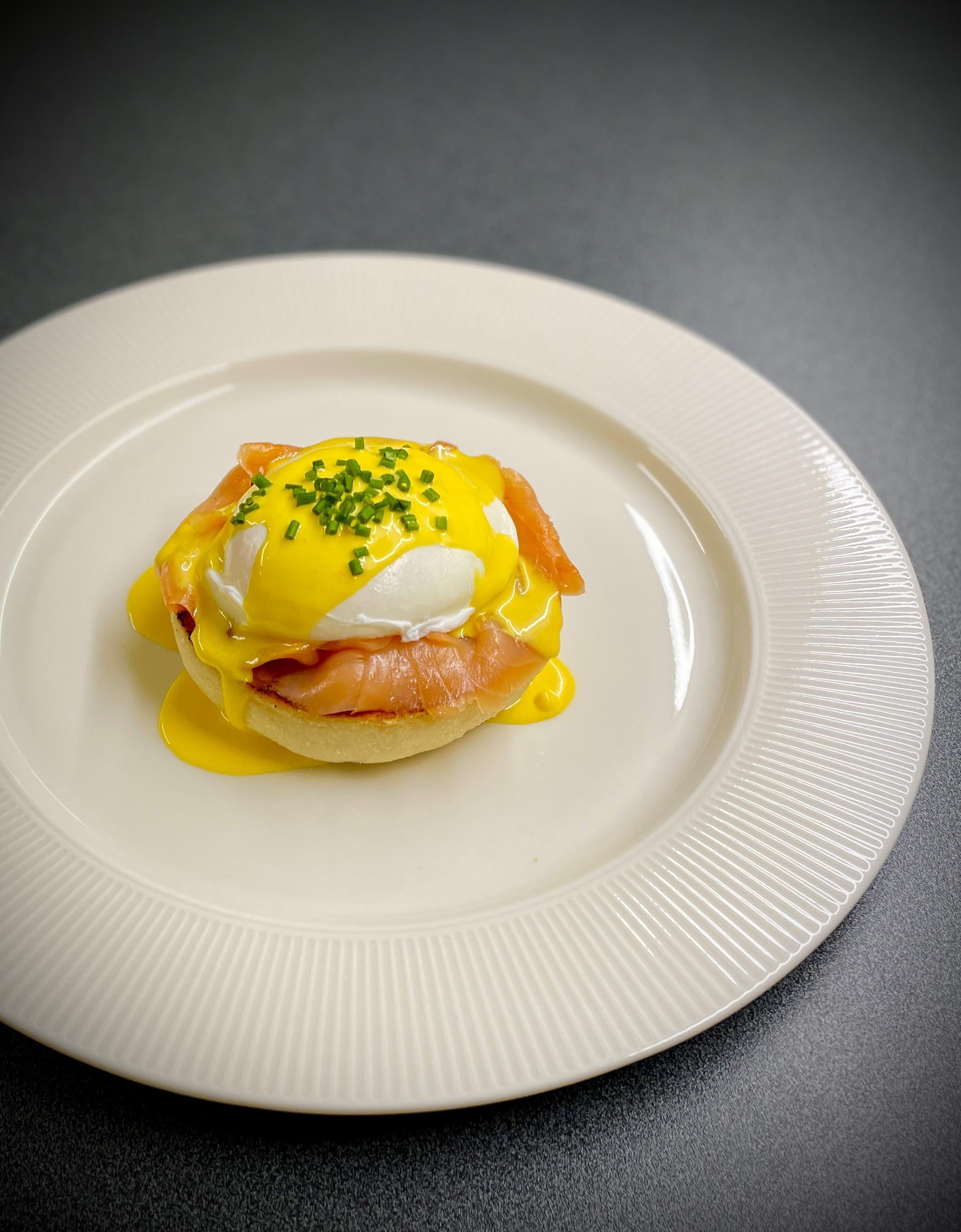 English muffin, smoked salmon, poached egg, hollandaise sauce, chives by narwhalnorway Culinary Culinary Plating