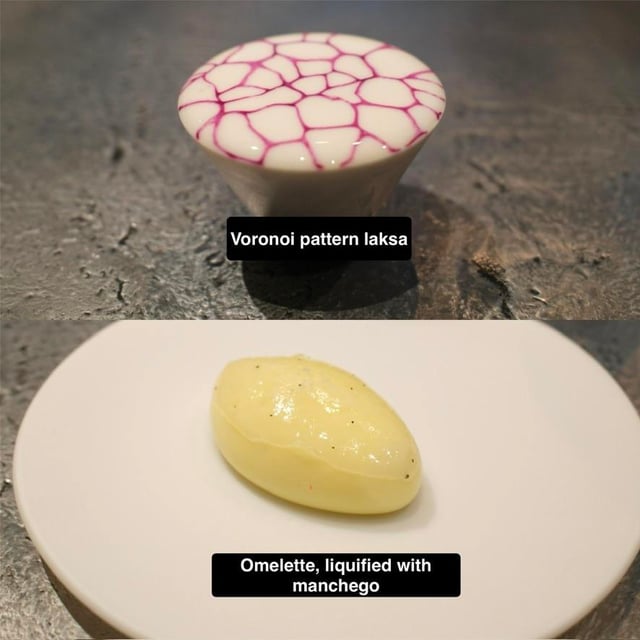 - Early small bites the laksa was amazing, the liquified omelette has to be one of the best “omelettes” I’ve eaten. Also, can’t complain about the space bread and caviar