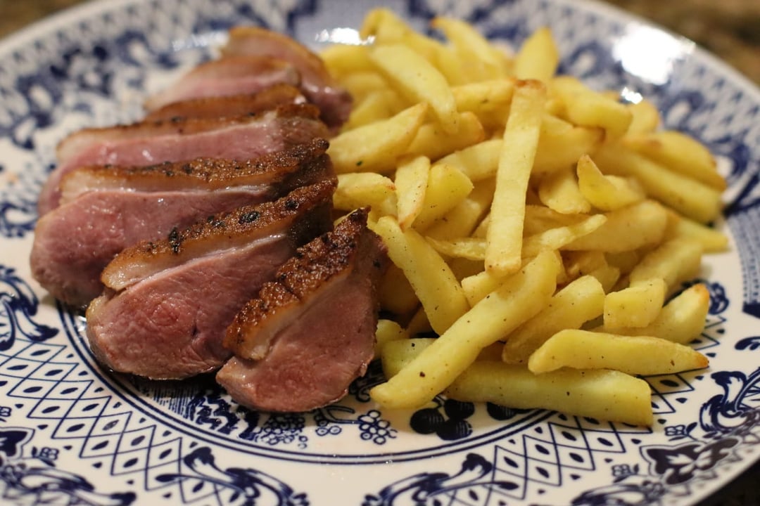 Duck & fries with pepper sauce [homemade]