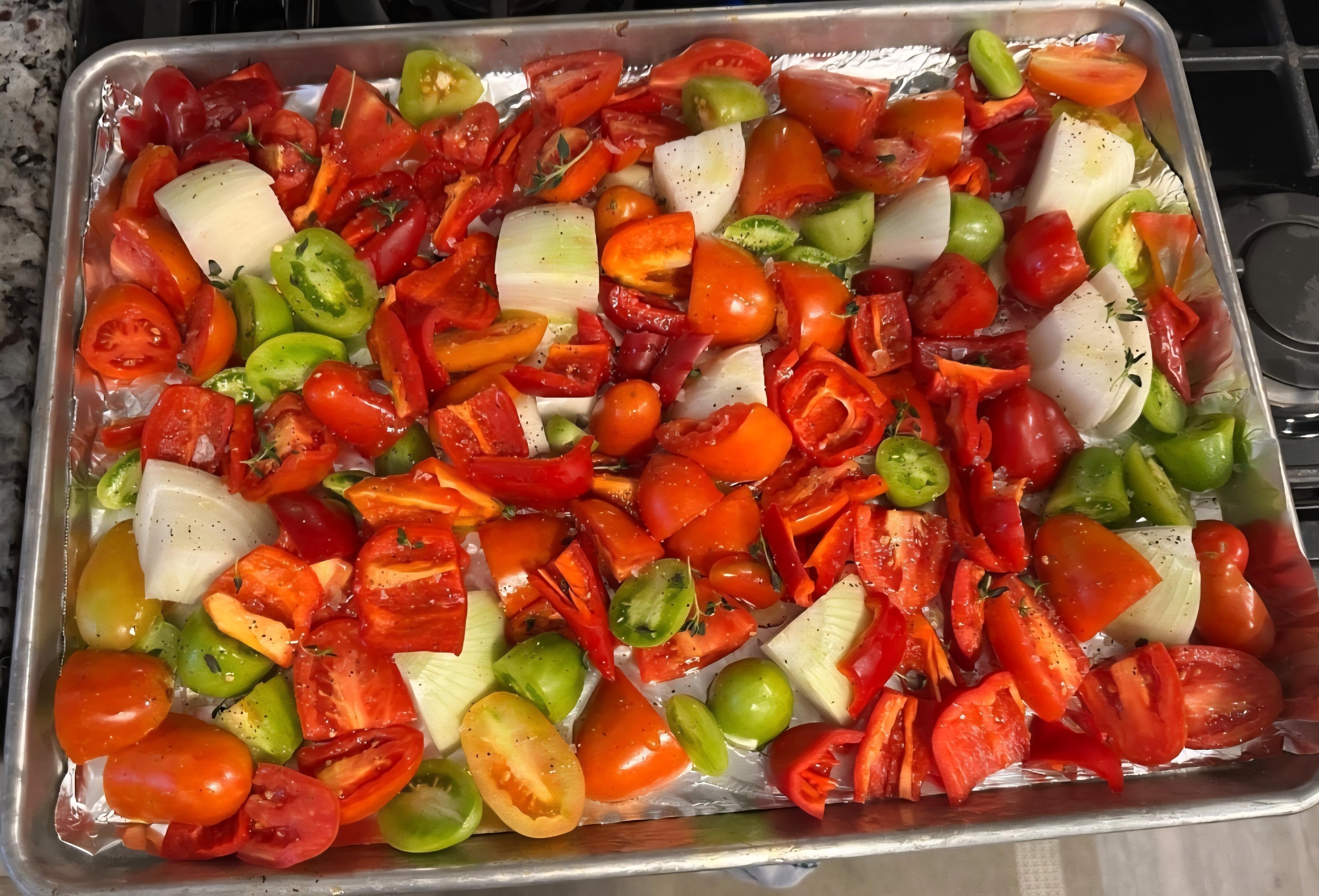 [Homemade] Roasted tomatoes, red peppers and onions before the frost wrecks the garden