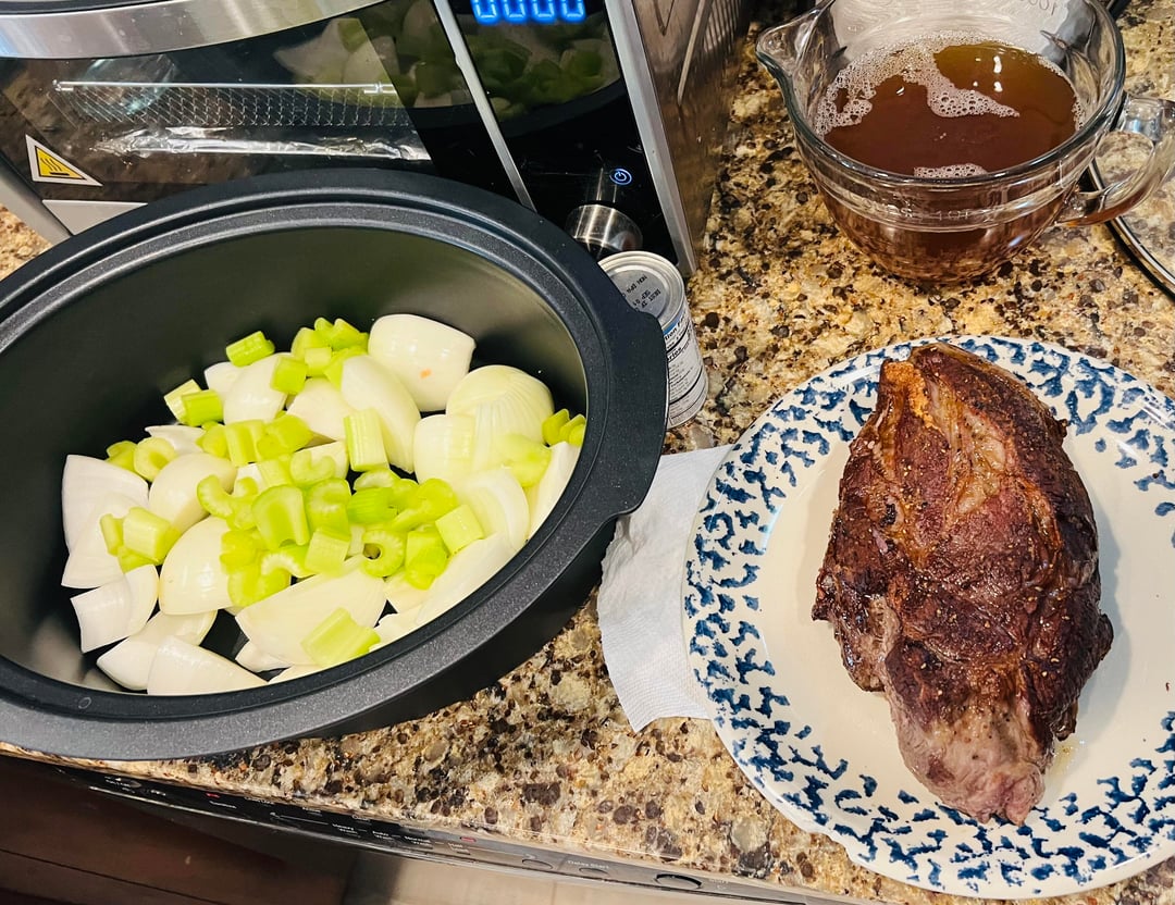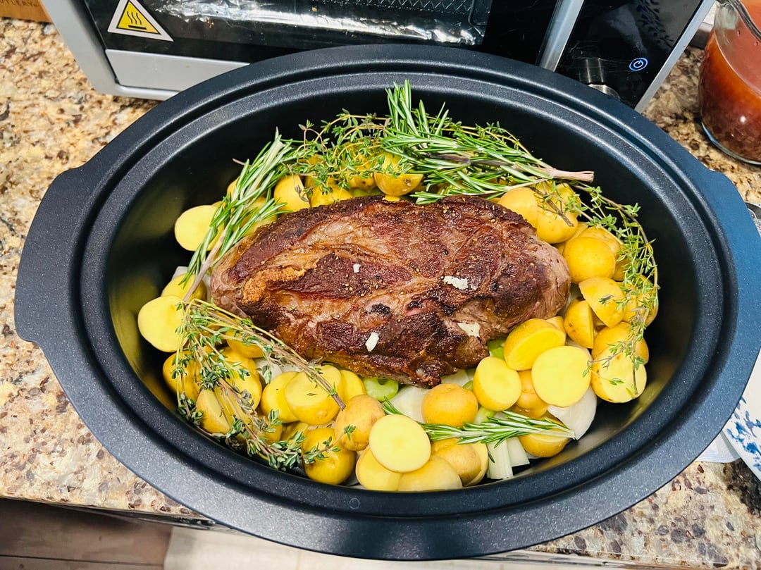 A couple of points or questions: 1. why is everything separate (meat, potatoes) in the after picture. That’s weird. 2. The roast should be falling apart and have an almost stringy appearance. 3. Where is the liquid!? You dip bread in the liquid or mix it with rice and it’s delicious. I think you need to give it another try. Look up a recipe and follow it. You’re certainly capable.