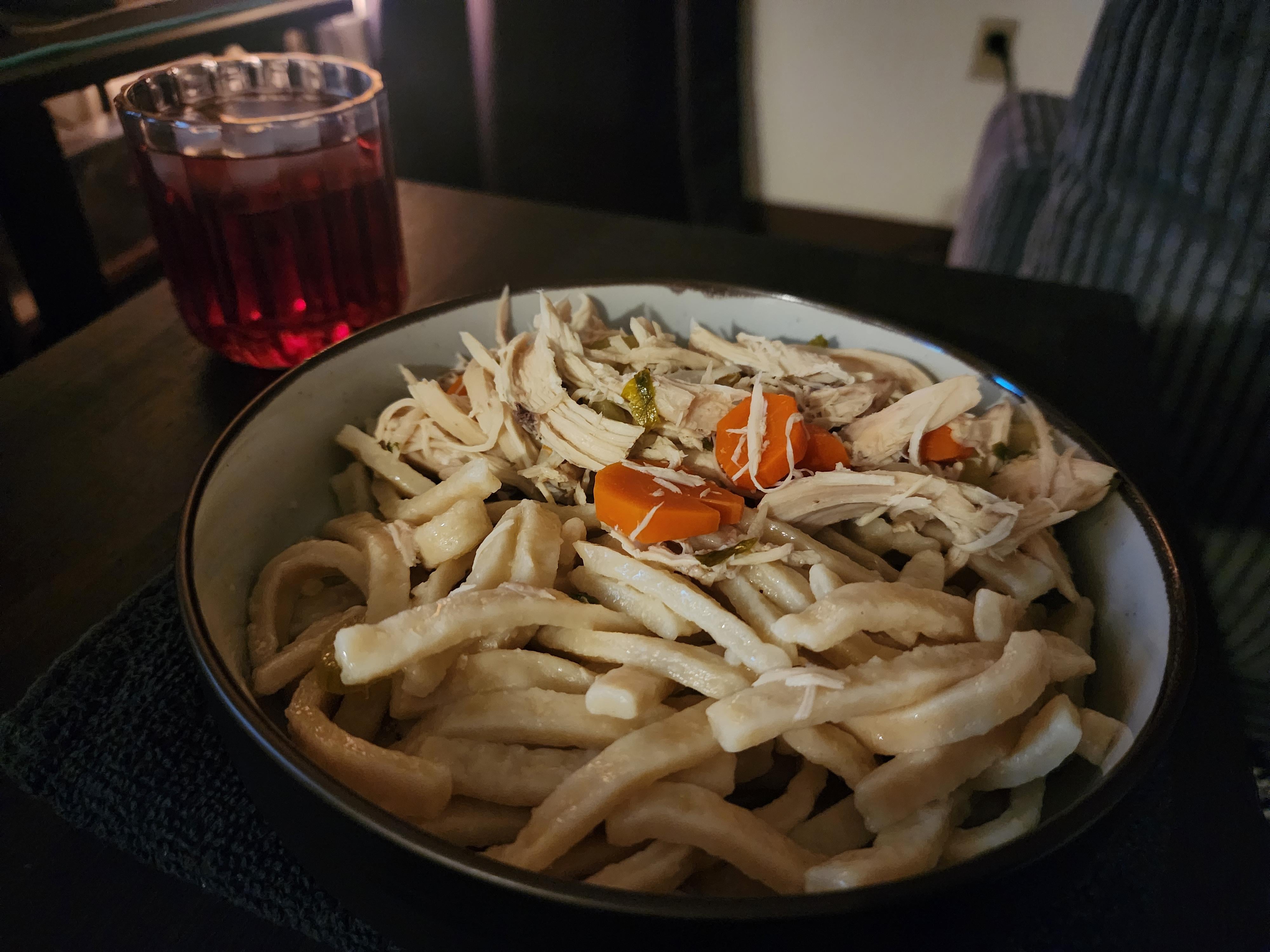 Dry brined whole chicken with a home made broth, fresh veggies, and home style egg noodles by TheDevlinSide714 Dinner Tonight Tonight's Dinner