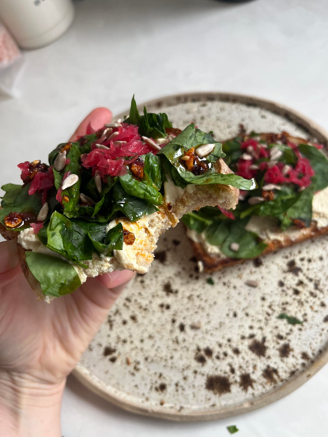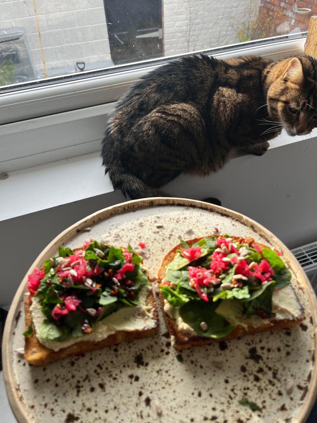 Loaded on sourdough toast, with spinach, crispy chilli oil and beetroot sauerkraut. Delicious! I actually had an extra slice after these 2 😋 because I am doing intermittent fasting and I was very hungry!! Really satisfying and tasty!