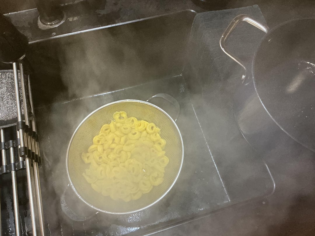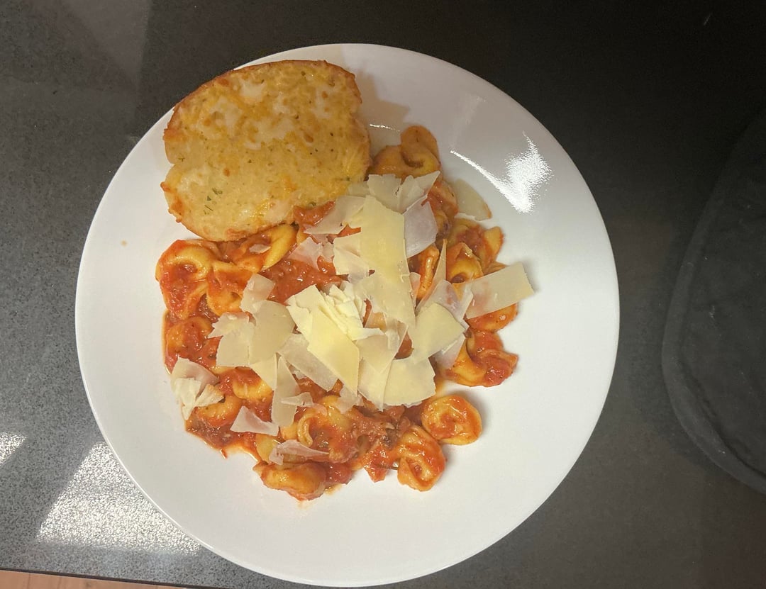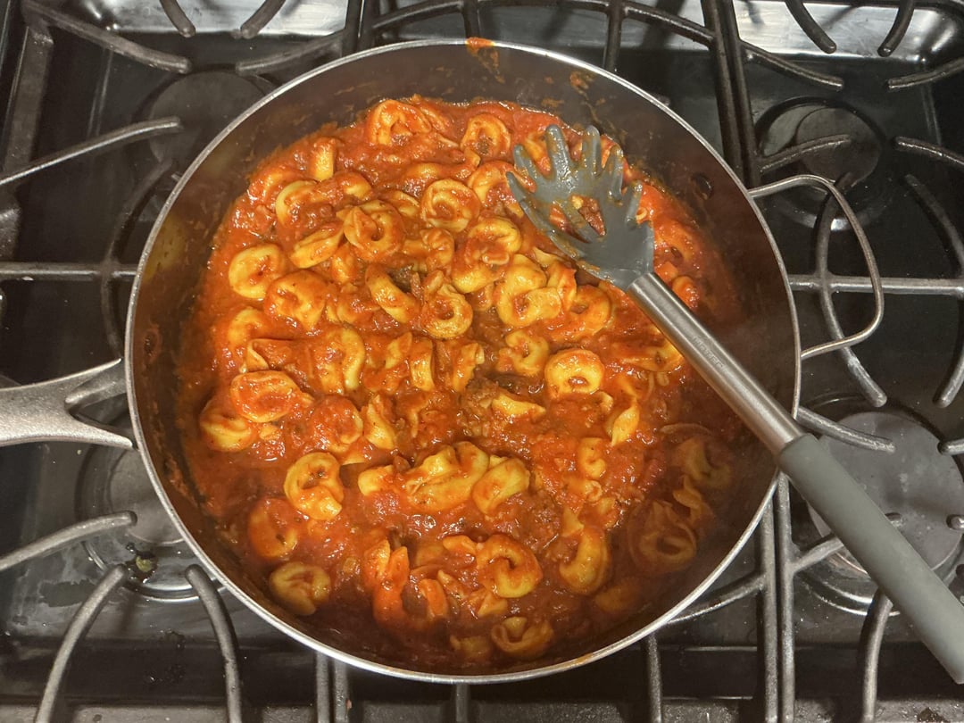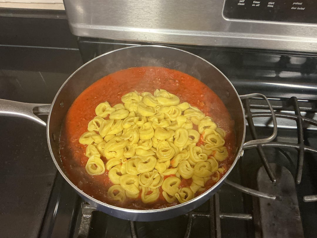 From one 19 oz bag frozen cheese tortellini’s boiled until tender (3 or 4 minutes)