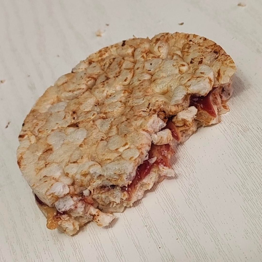 Morning snack: Ricecake sandwich with PB and Blueberry honey (132k), Half of raw bar (134k)