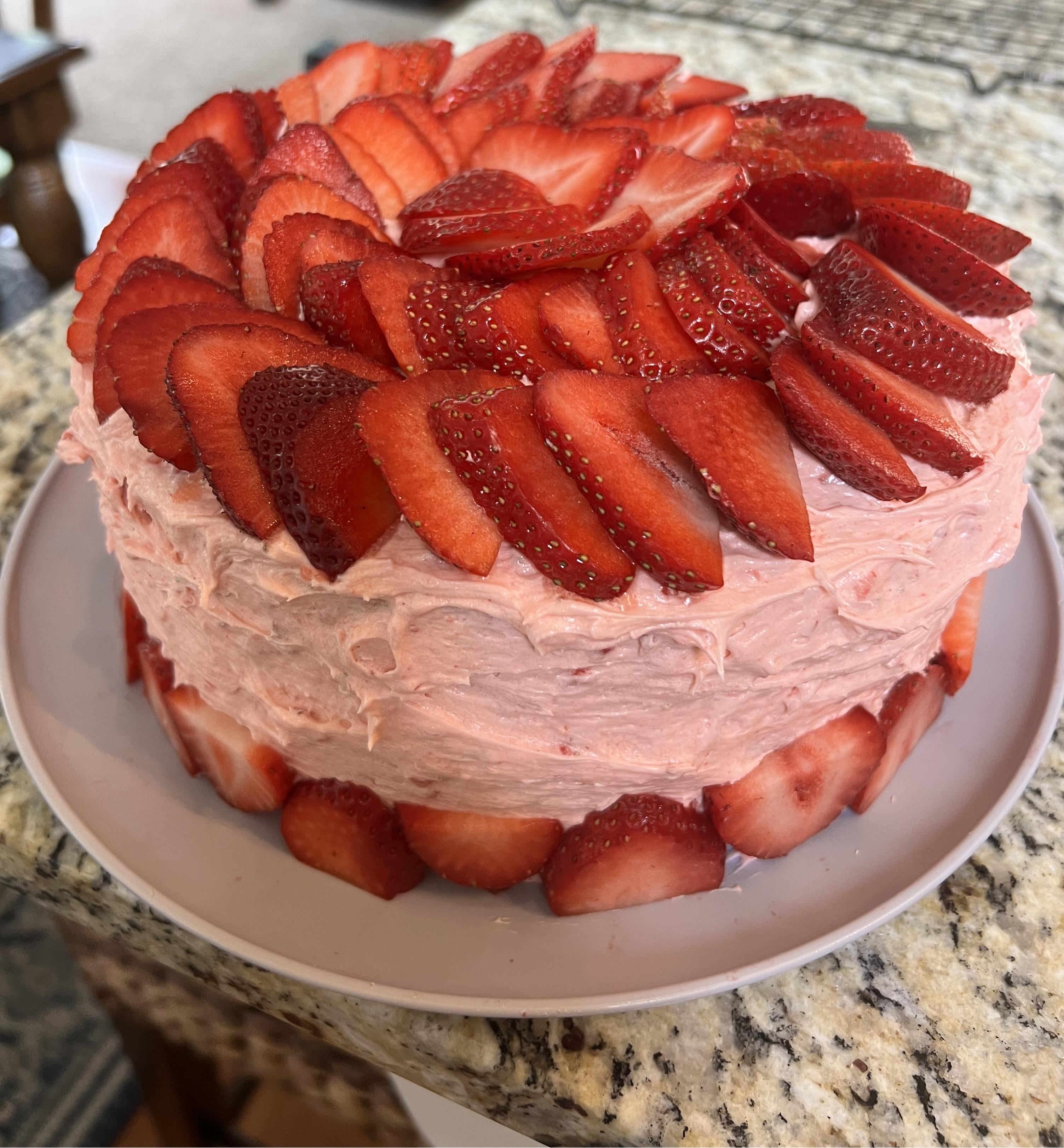 My first attempt at this cake. And I know I suck at frosting the cake. But it tasted amazing. And was kinda pretty too.