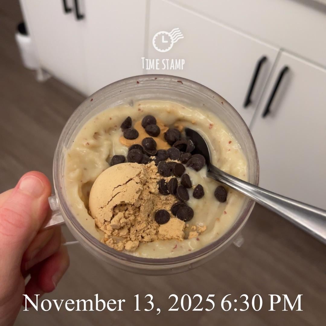 Banana, cauliflower, and Japanese sweet potato smoothie with 2tbs of pb-fit (I like 1tbs mixed with water and the other tbs dry to mix in with the smoothie)