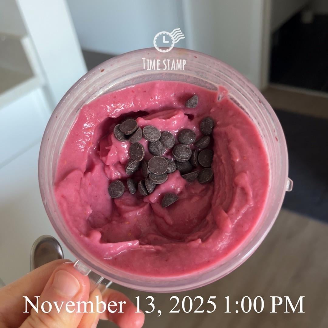 Banana, cauliflower, Japanese sweet potato, and raspberry smoothie