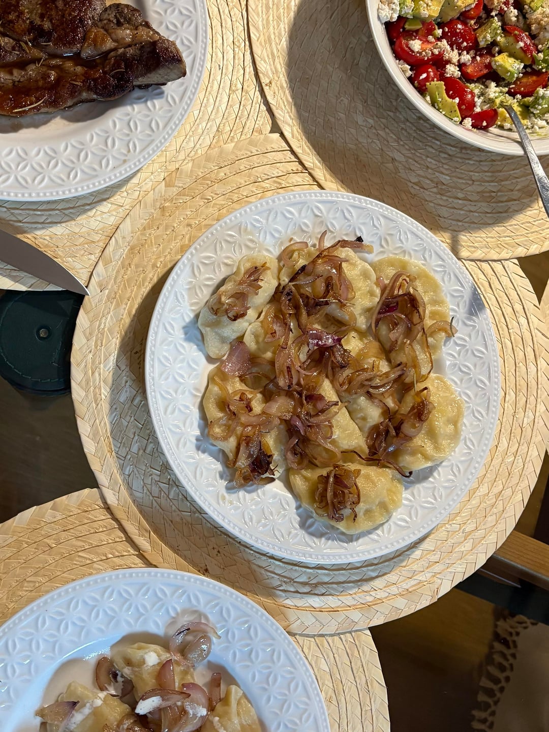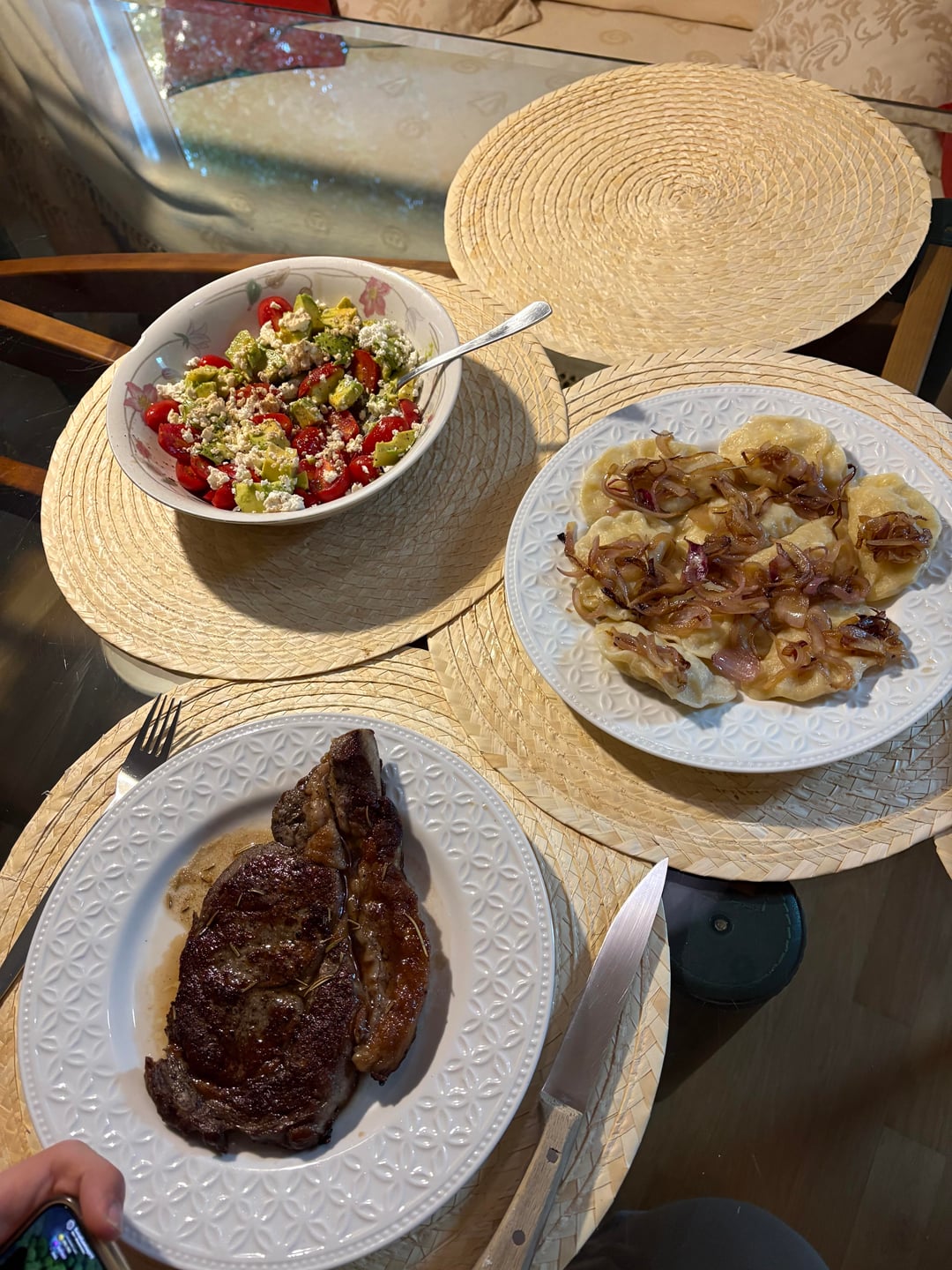 Steak and pierogi, topped w/ onions that I caramelised in butter + the steak’s juices by adorablesalt18 Dinner Tonight Tonight's Dinner