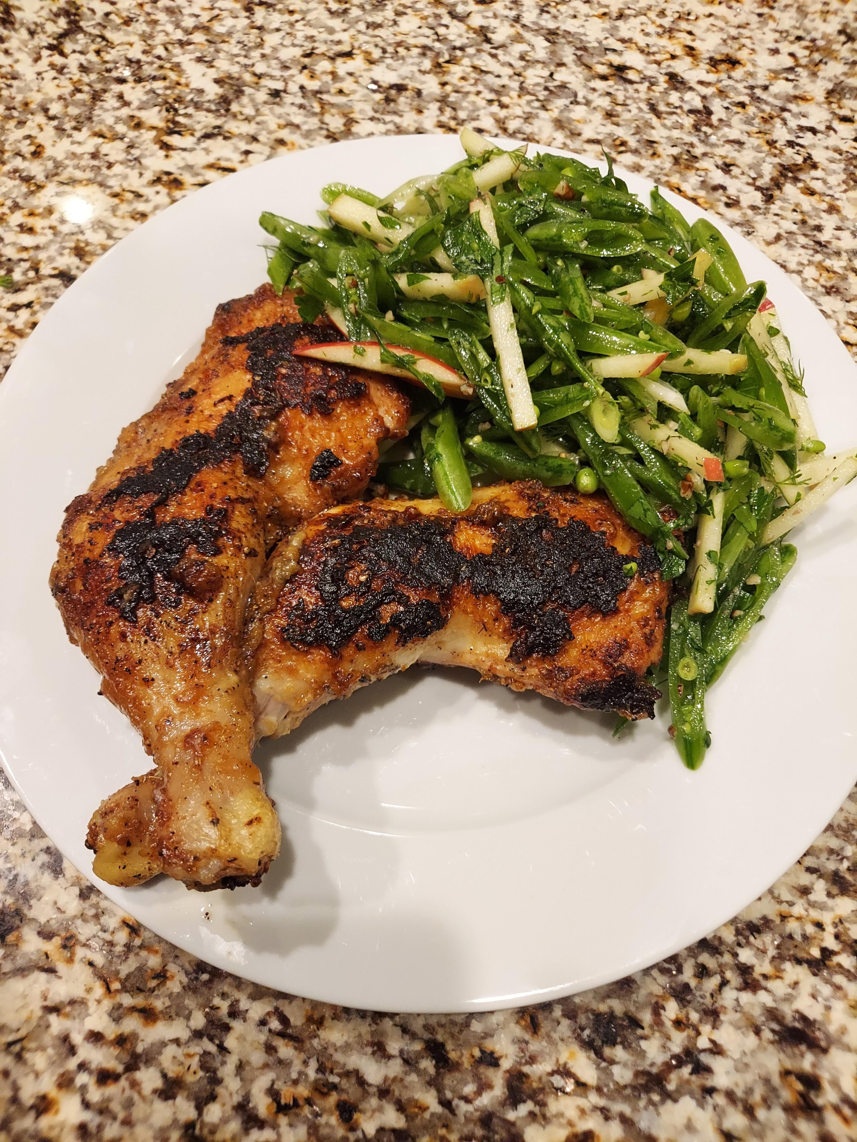 Miso honey butter chicken legs and an herby snow pea apple slaw by Healthy_Operation327 Dinner Tonight Tonight's Dinner
