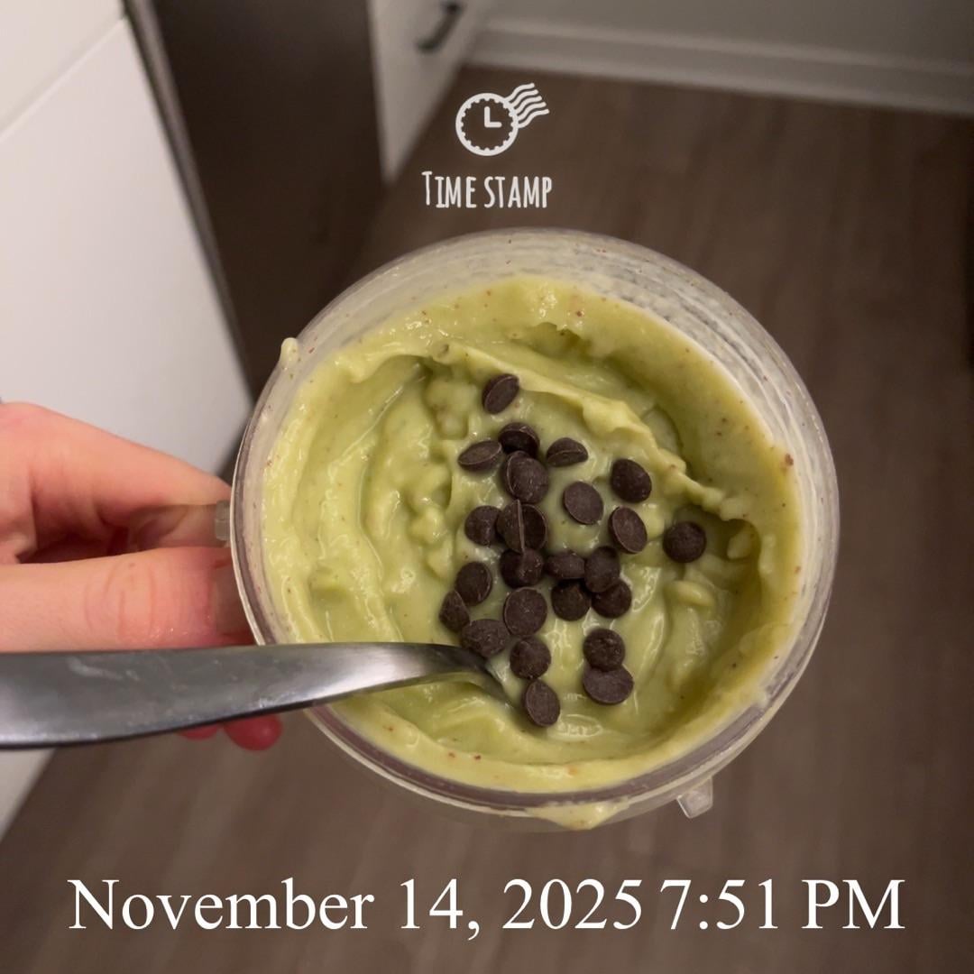 Banana, cauliflower, Japanese sweet potato mint choco chip smoothie (with a lil spinach for that mint green look 😂)