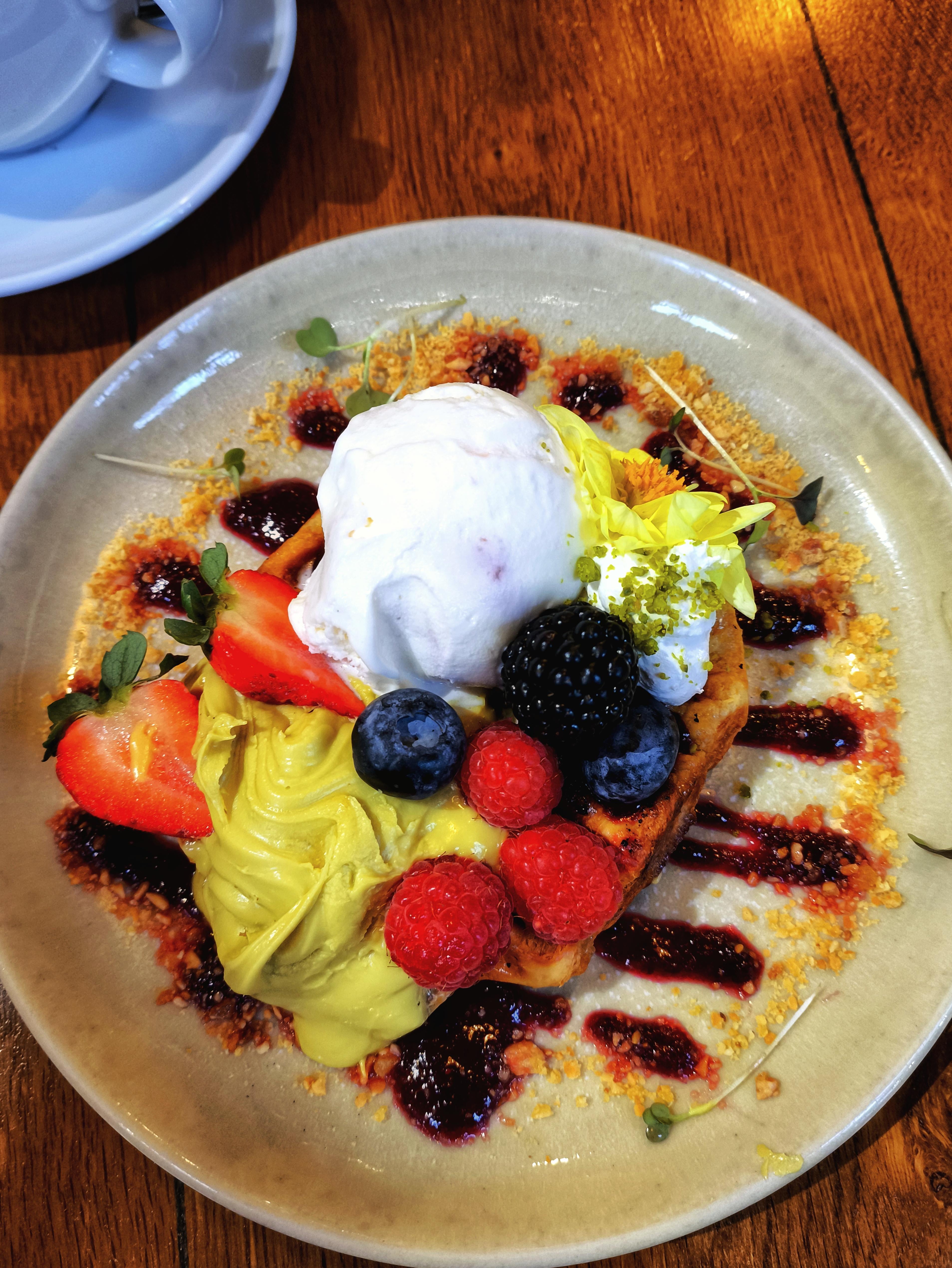 (I ate) waffles with pistachio cream and ice cream – Garden Porto, Portugal