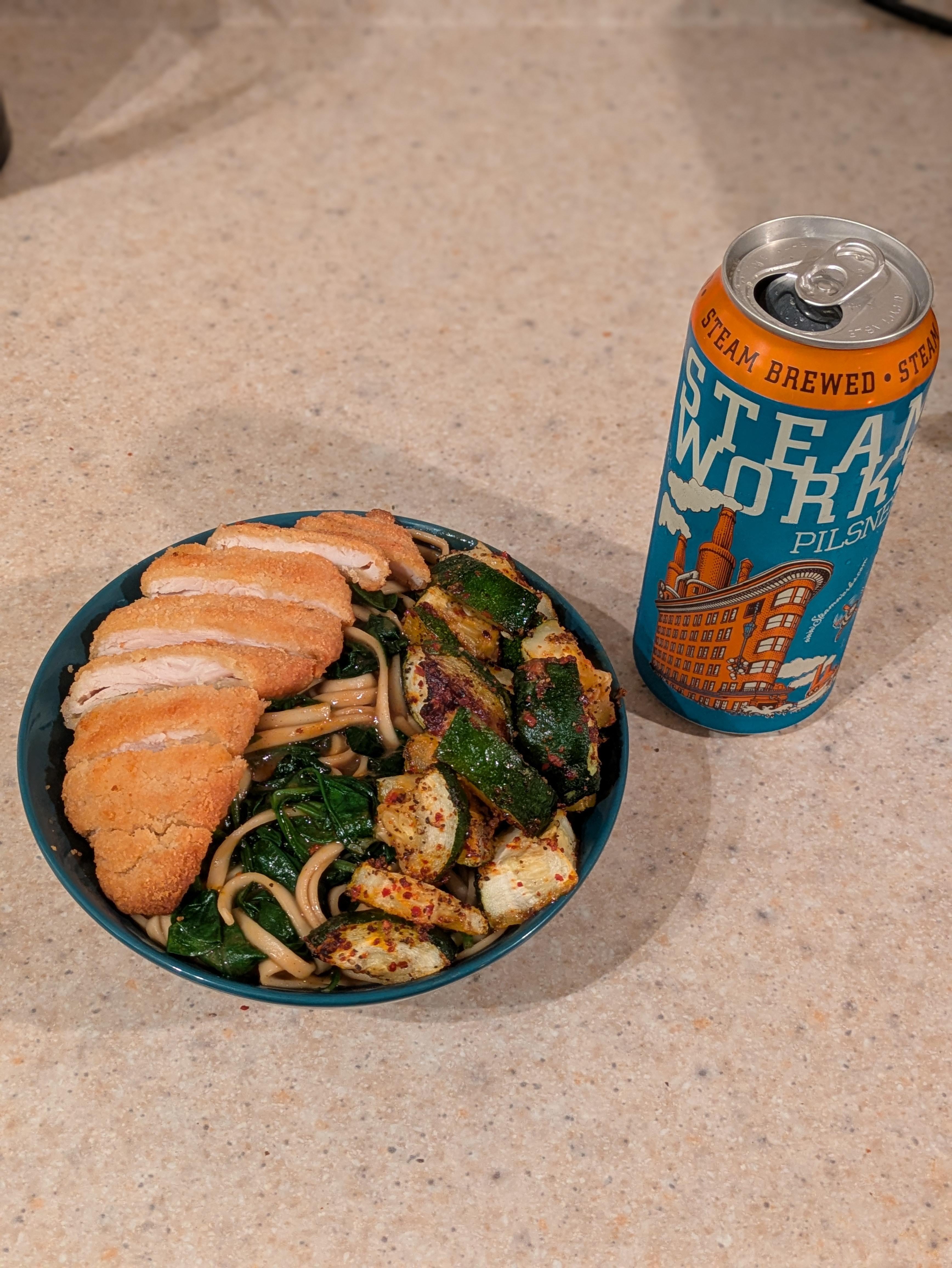 Chicken Katsu with Japanese Curry Noodles and Veg