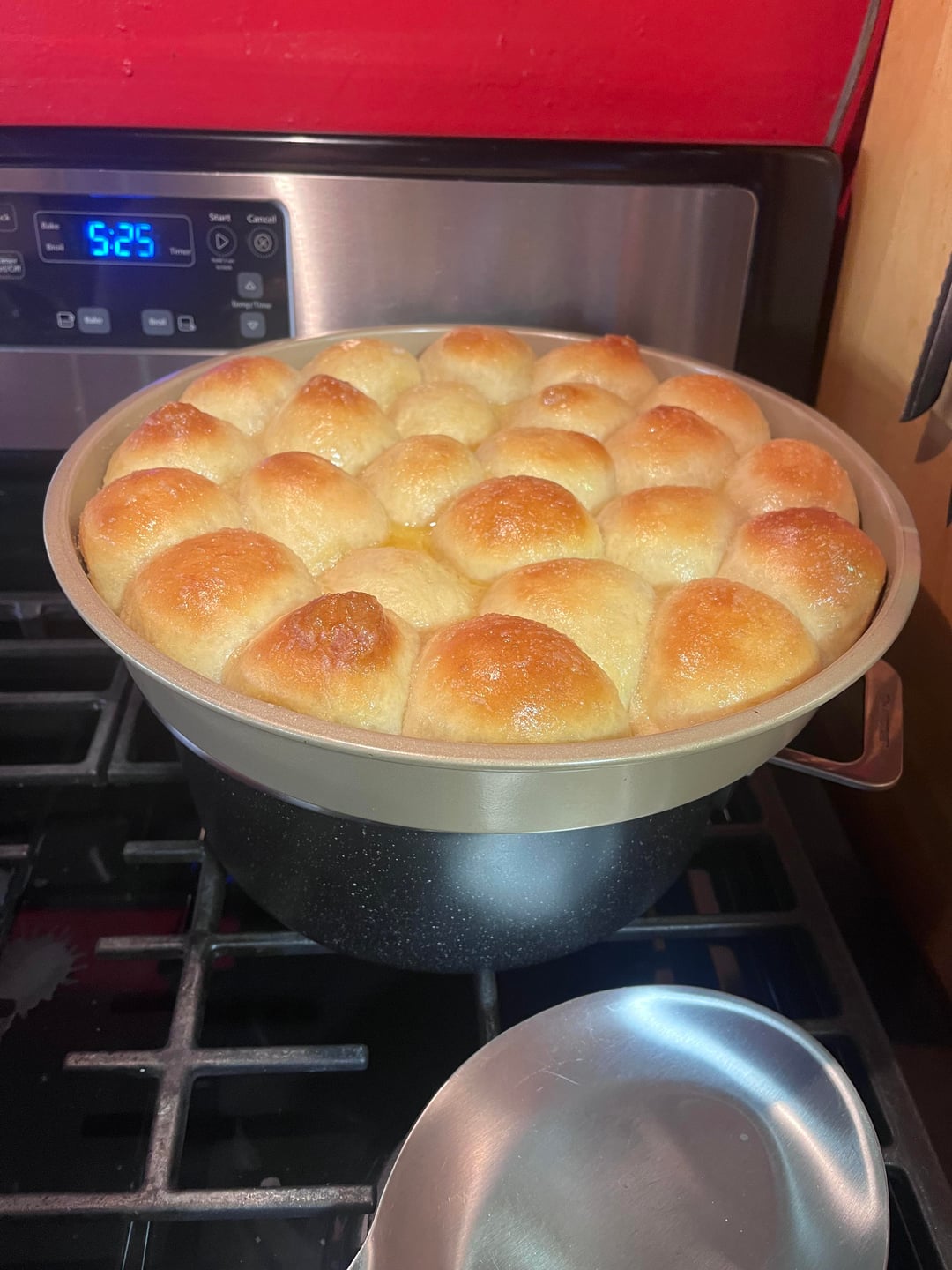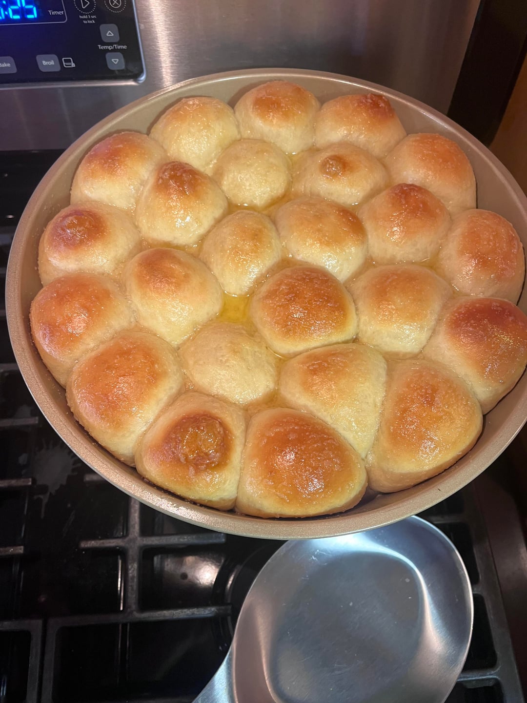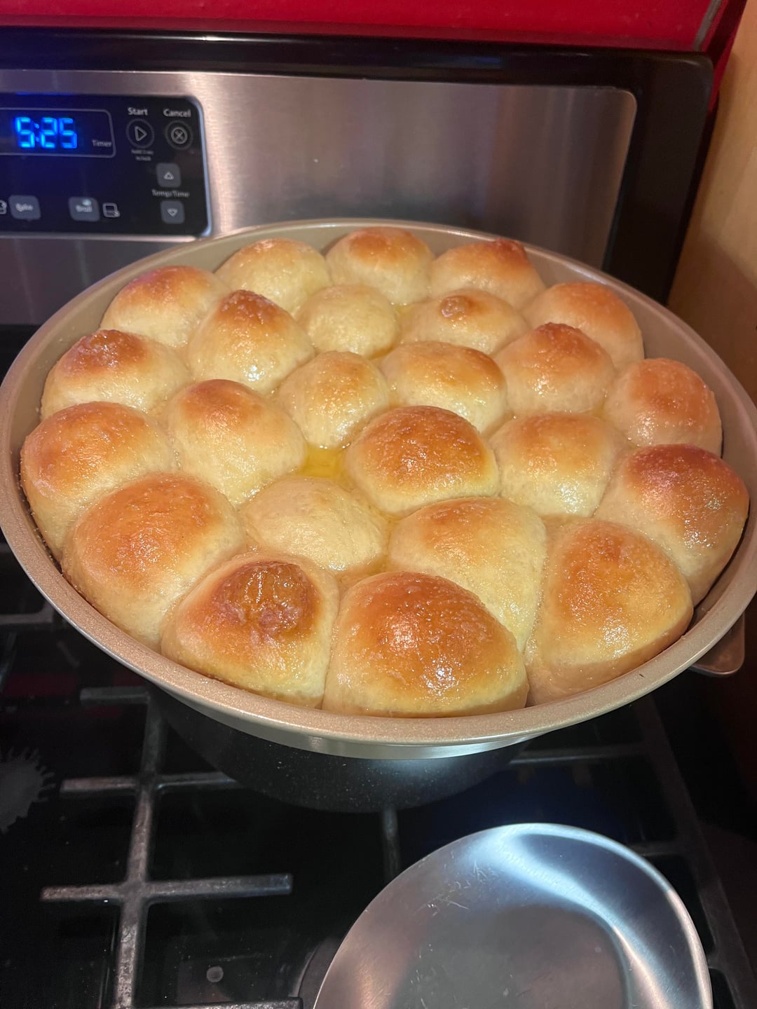 I’ve made homemade garlic rolls from scratch before, but this was the first time baking them this way. What a learning curve! The outer rolls turned out perfectly golden and fluffy, but the inner ones were still doughy. Definitely won’t do it like that again.
