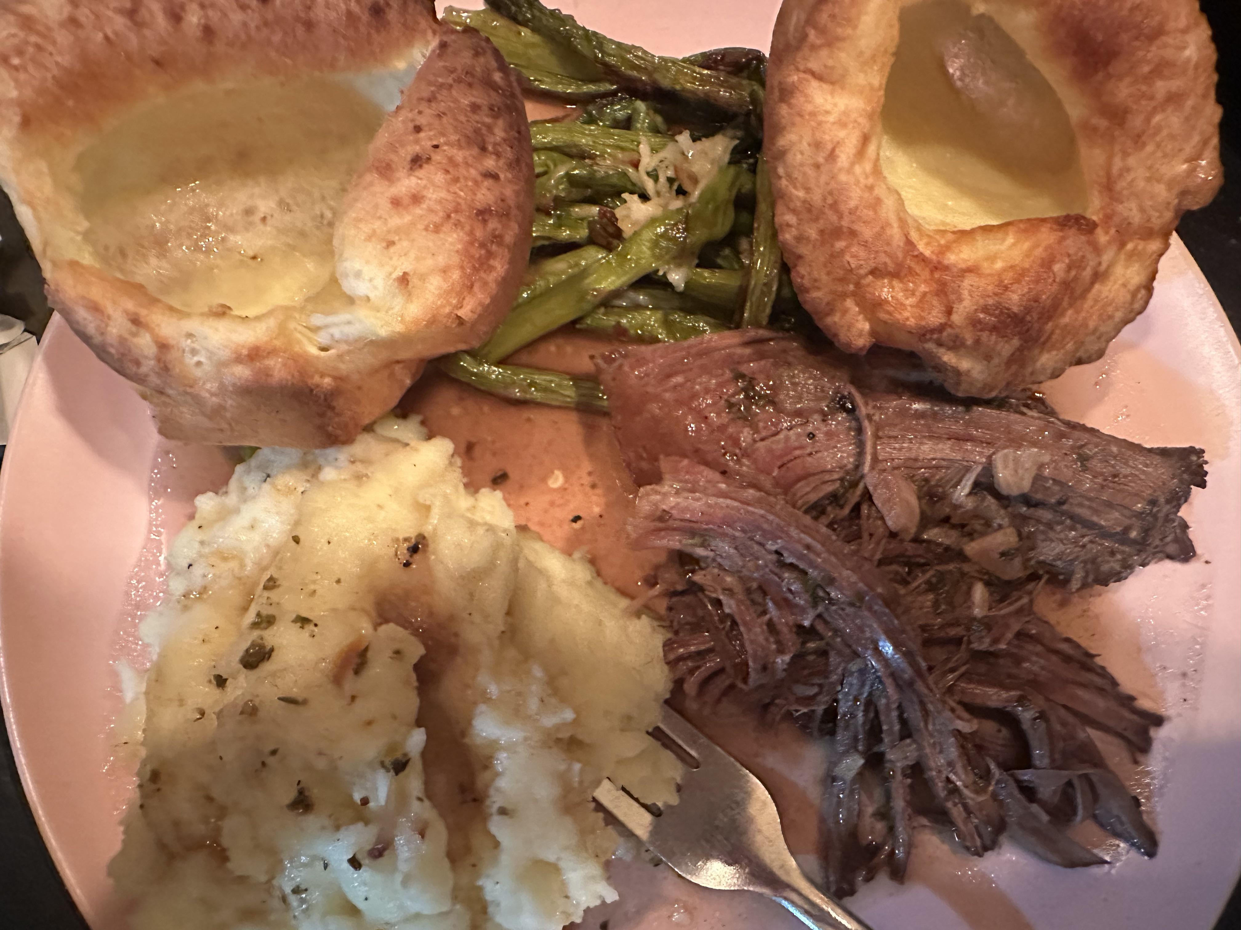 Roast beef with mashed potatoes, Yorkshire pudding and Parmesan garlic asparagus! by Glittering_Emu7305 Dinner Tonight Tonight's Dinner