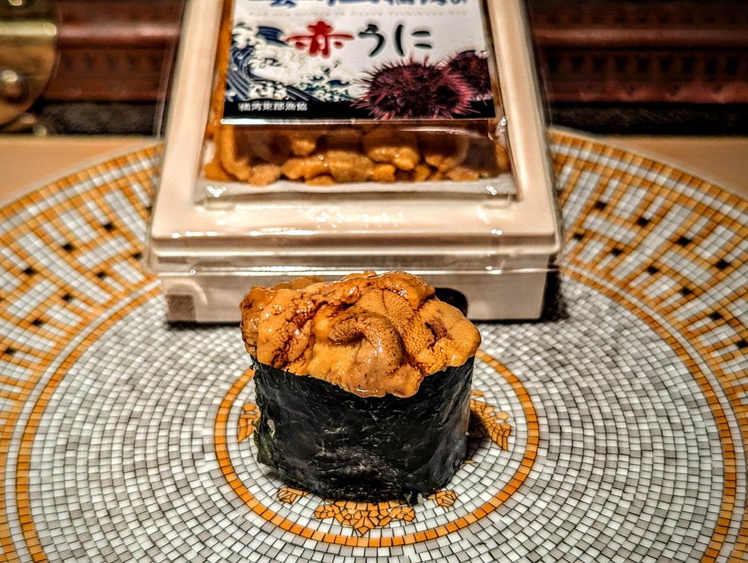 3. Sushi Takamitsu (4.47, Silver award) – 10 seats, with a predominantly foreign crowd, Sushi Takamitsu is the rowdiest of the sushiyas I visited. According to a guest I dined with at Sawada, who visited Sushi Takamitsu when he was just starting out, things have changed a lot in the interim, now attracting "a certain crowd". This is definitely the case, but your mileage may vary; at any rate, something to be aware of when booking (at least if going through Tableall, as I did). Despite this, the food offered at Sushi Takamitsu is incredible, as is his and his staff's hospitality. Uni appears frequently through the course of a sitting, with various types coming from Hokkaido and Kyushu (Takamitsu-san is a devotee of uni, and broke the record for the highest bid on uni in Japan earlier in the year). However, there is much more here besides uni; exquisite cuts of tuna, sea bream, mackerel, and gratis shots of some not inexpensive Clase Azul tequila and Yamazaki 18 year whisky. The best that I visited besides Sawada.