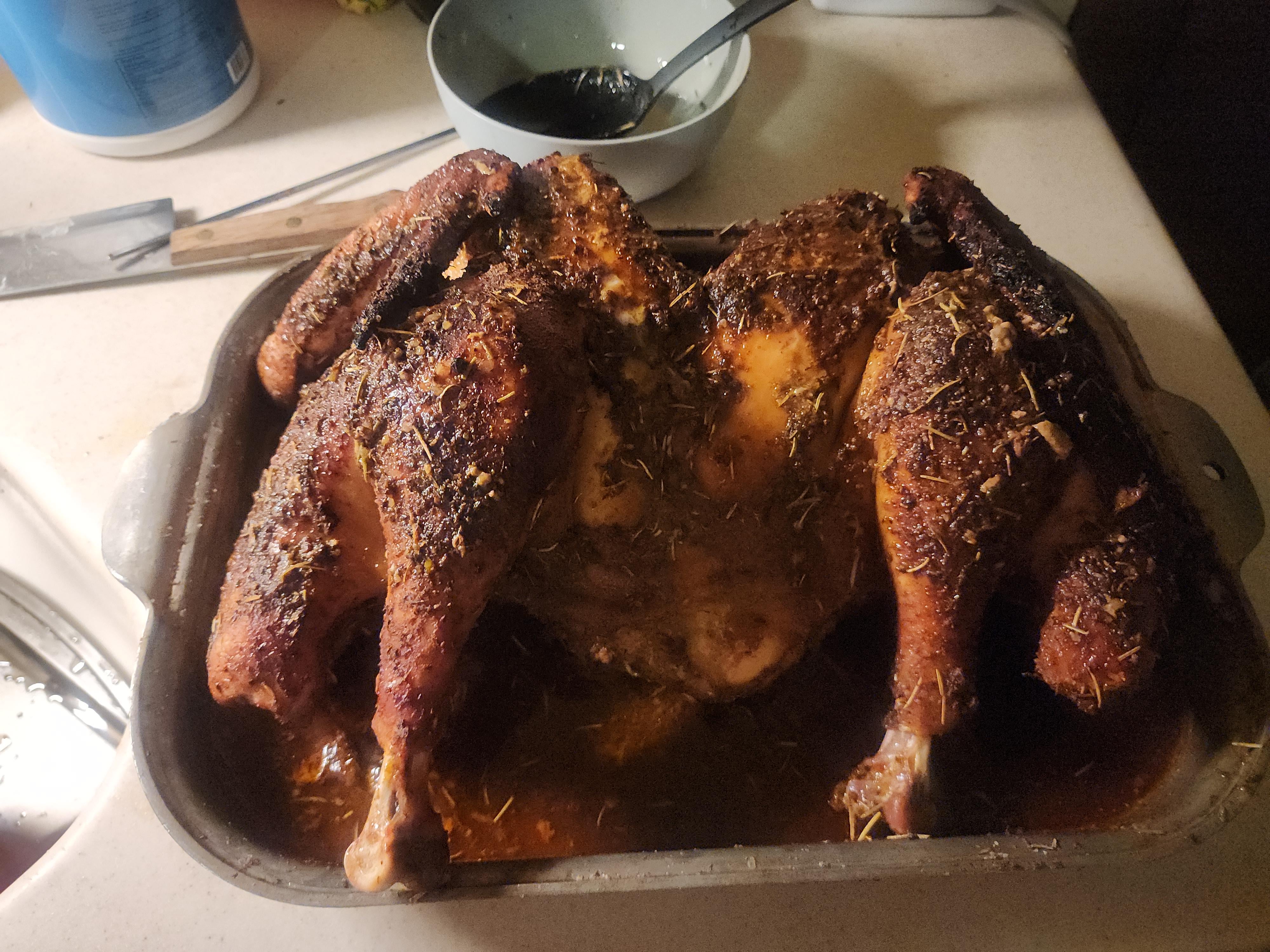 Notably ive never made a turkey before, spatchcocked a bird, and tbh I learned my lesson my studio apartment oven is not meant for this size of food 😂 but it taste great