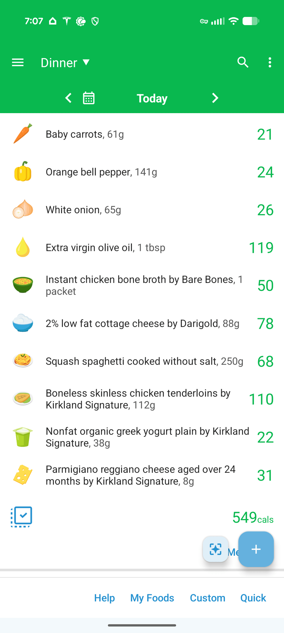 <550 cal dinner OR 275 depending on your appetite. I originally made this with the intention of it being a single portion but the volume that the spaghetti squash added surprised me! The portion pictured is HALF of the recipe.
