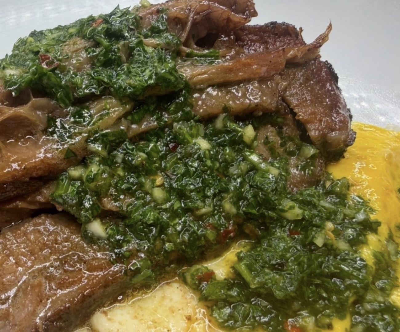 Brisket with fried egg and Chimichurri