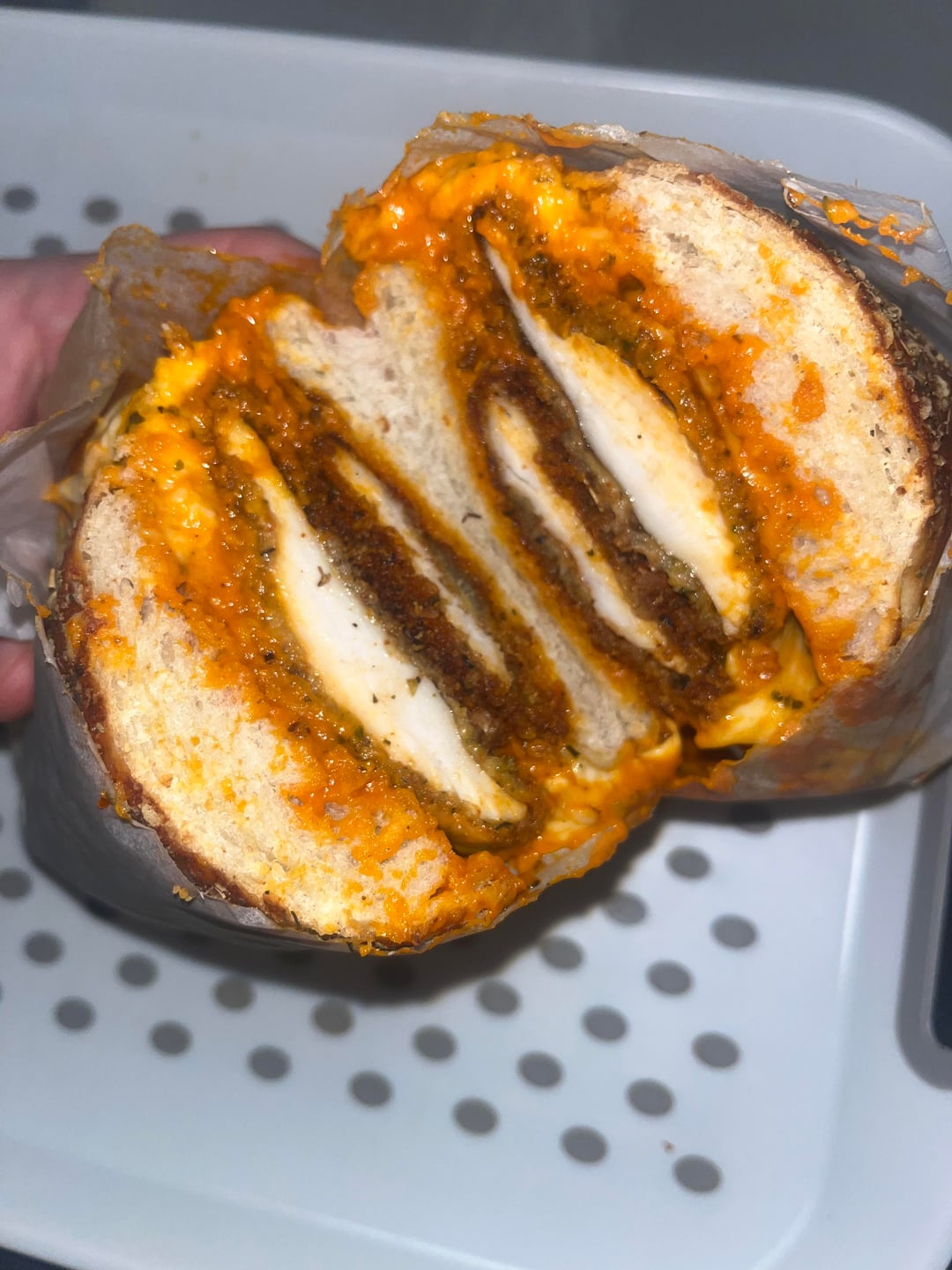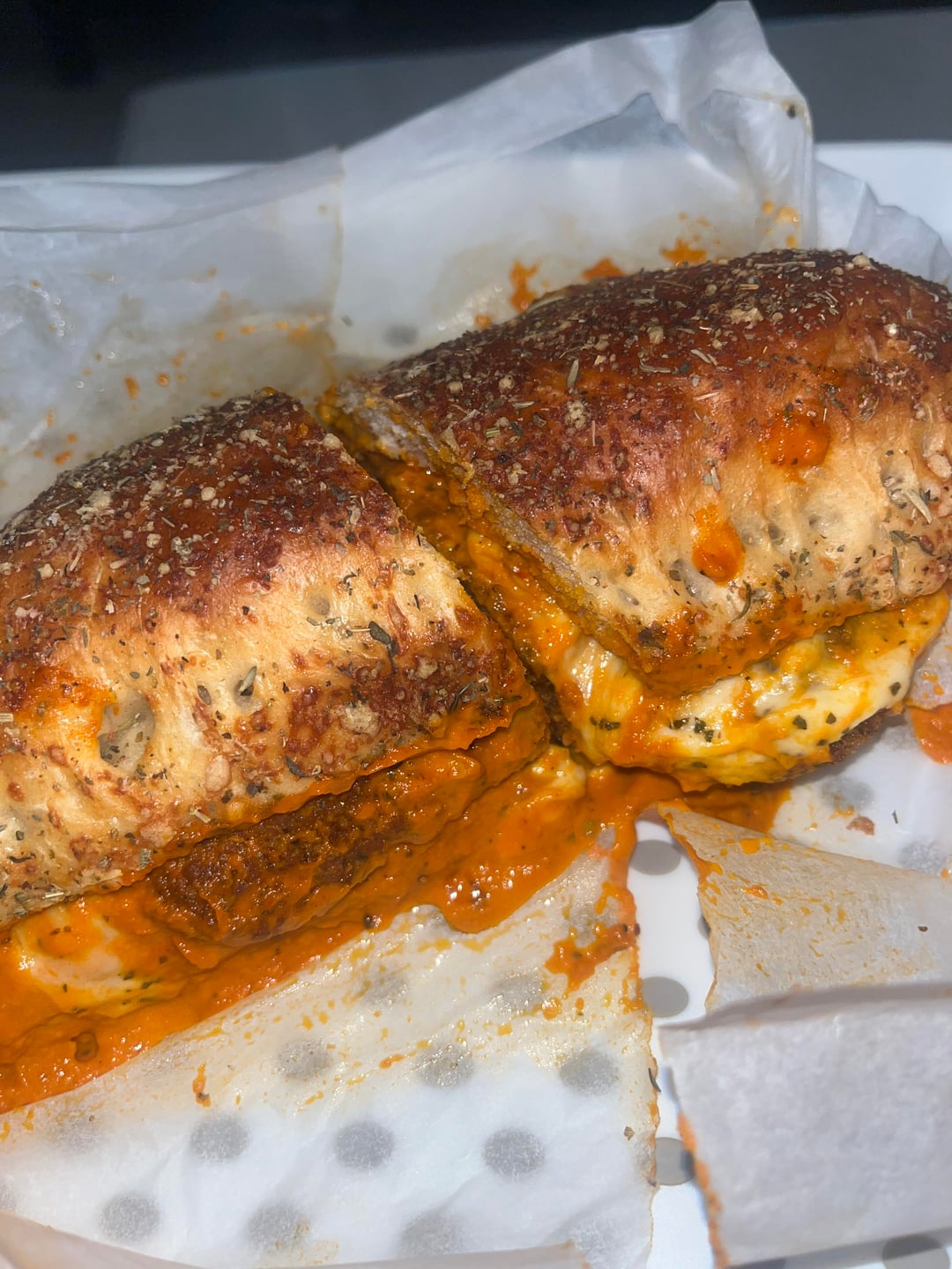 Made my first chicken parm (with vodka sauce) ,a little messy