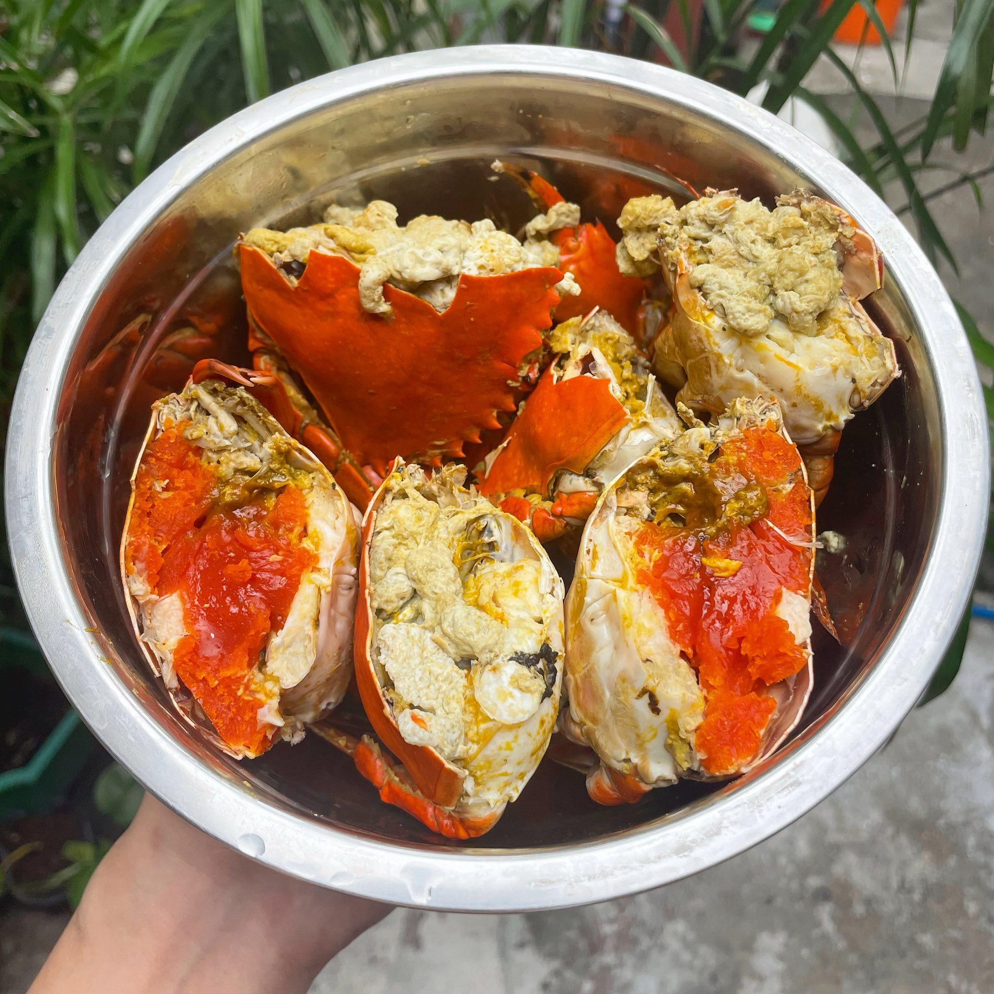[OC] Freshly steamed crab loaded with bright red roe one of my favorite treats! by FlirtyFlame-Maria Food Porn
