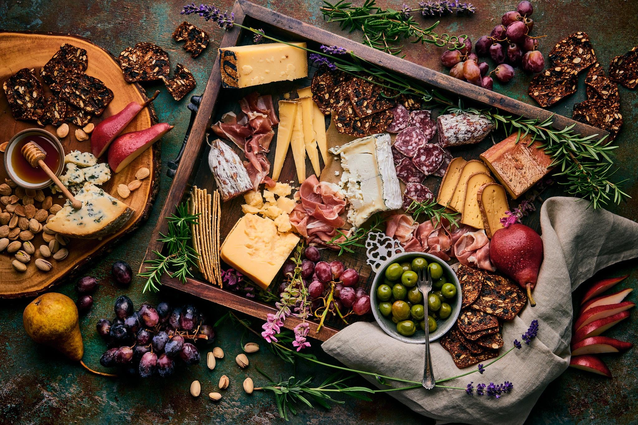 The client provided the cheeses, charcuterie, crackers and olives. I added the fruit, nuts, honey and herbs. Our favorite cheeses were the blue (Point Reyes) and the aged goat (Humbolt Fog). Actually, they were all amazing. by NerdsWithKnives Food Porn