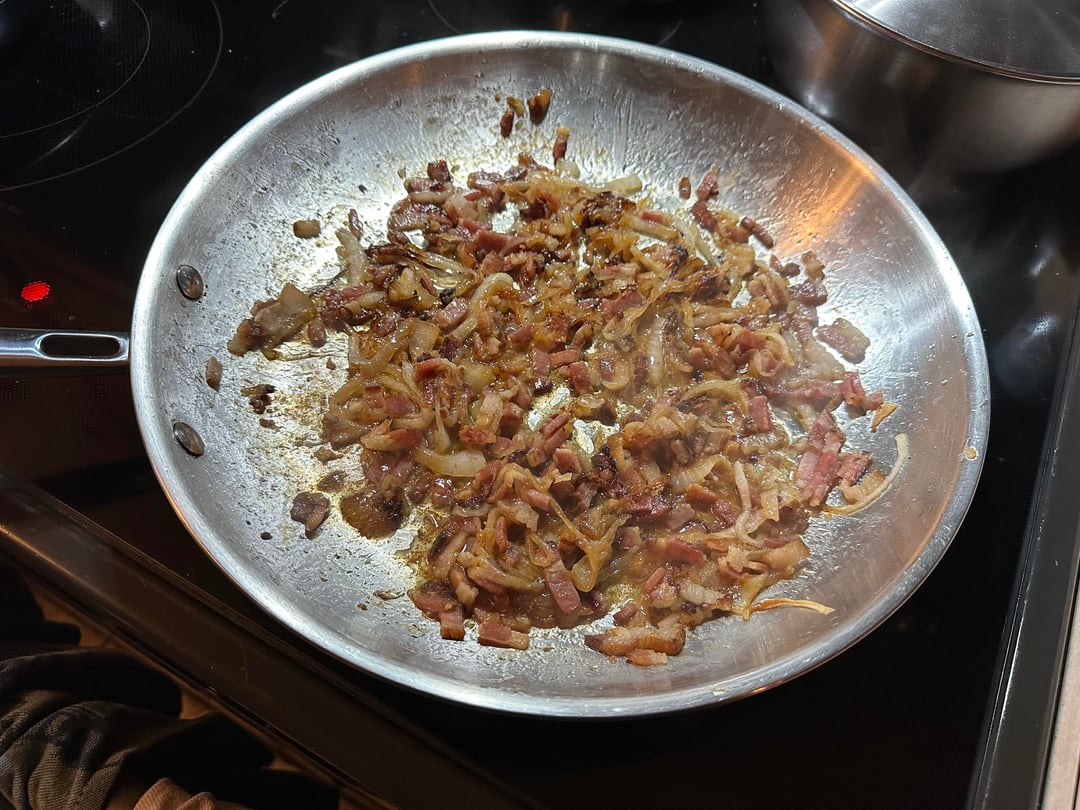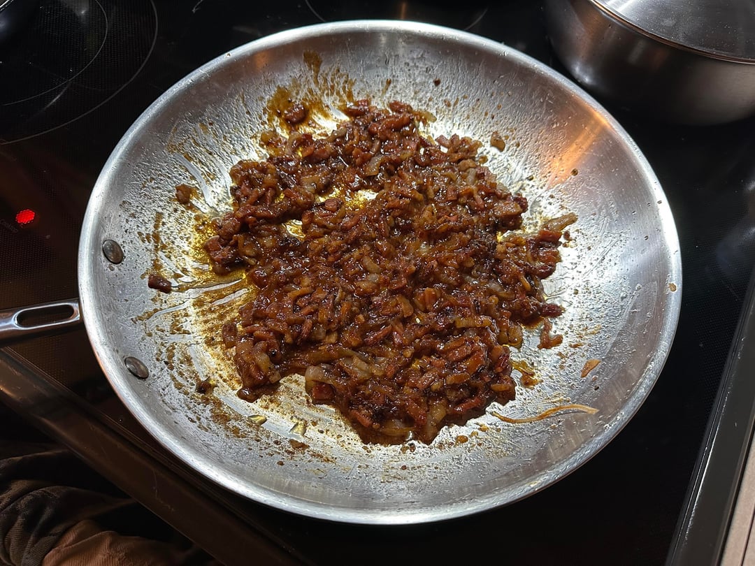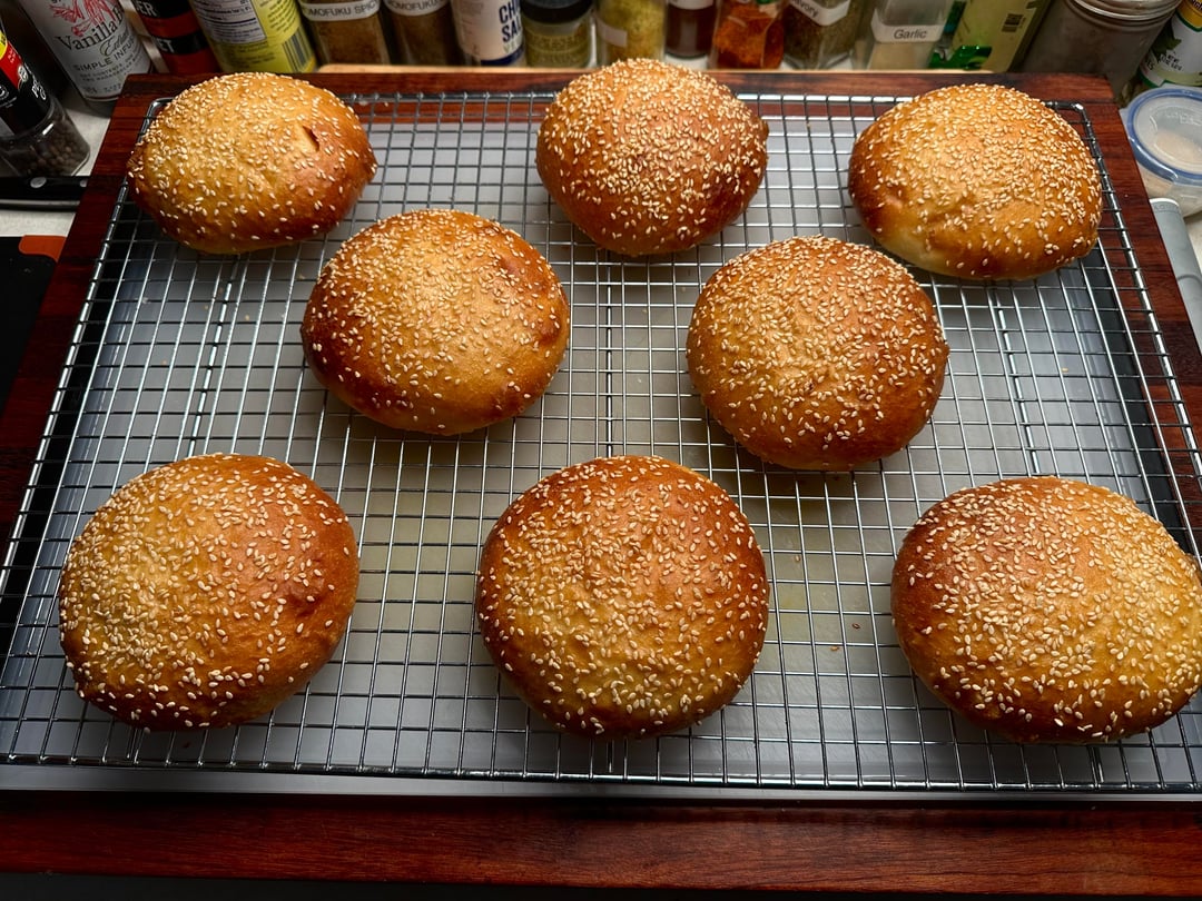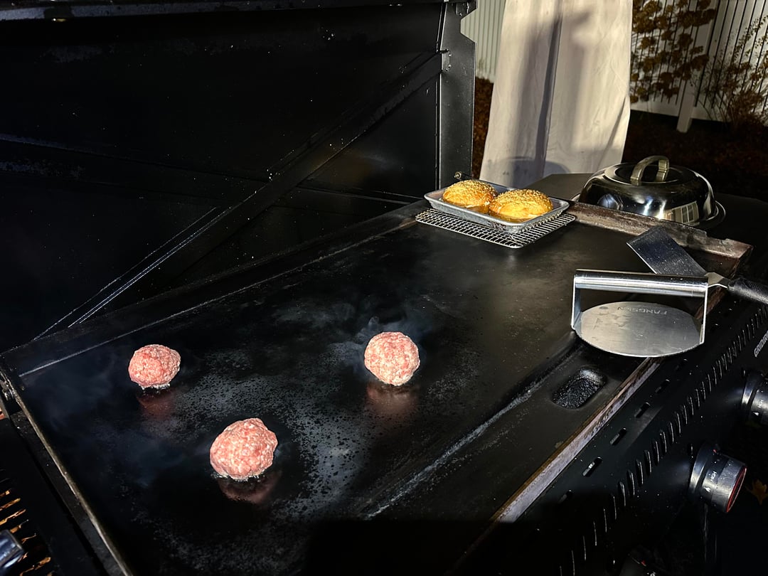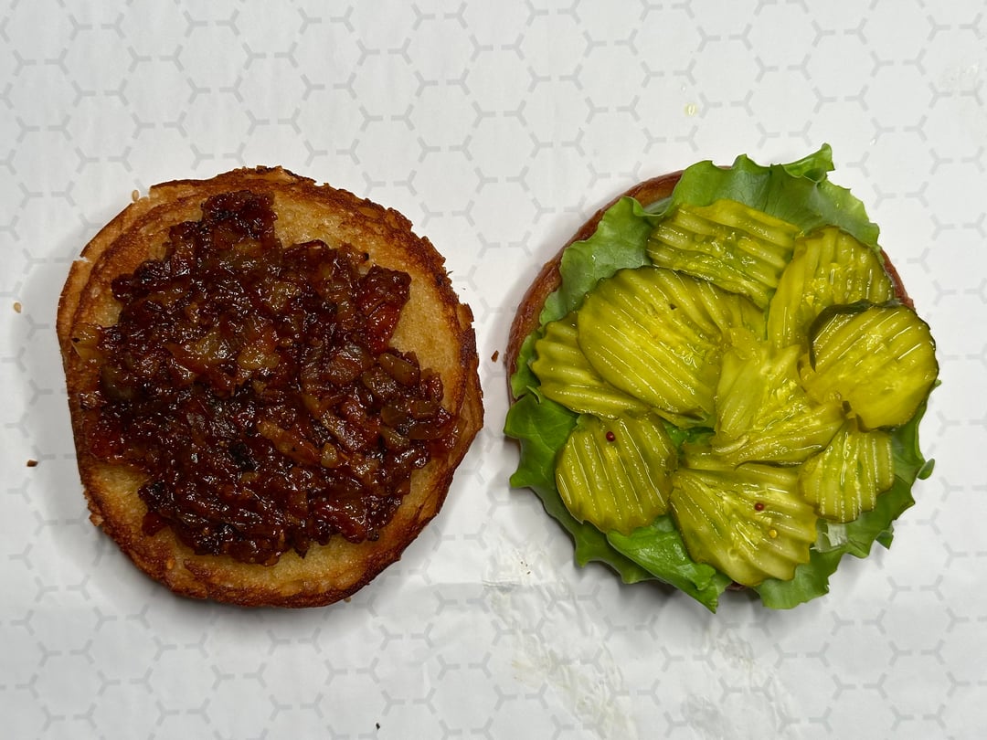 Burger night! This week’s special had home ground chuck, sirloin, and brisket smash patties, American cheese, caramelized bacon and onion with BBQ sauce, homemade pickles, and my sweet and zesty sauce, on a buttered and griddled homemade bun.