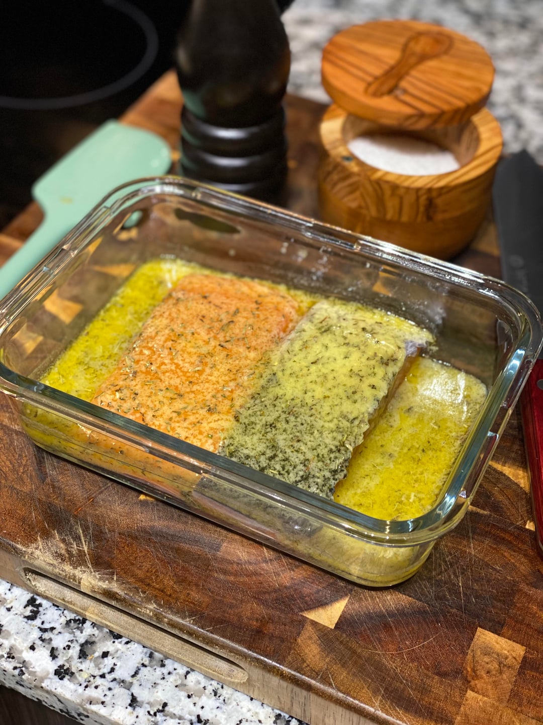 Herb butter salmon over caramelized onions with charred green beans by Garden_Jolly Dinner Tonight Tonight's Dinner