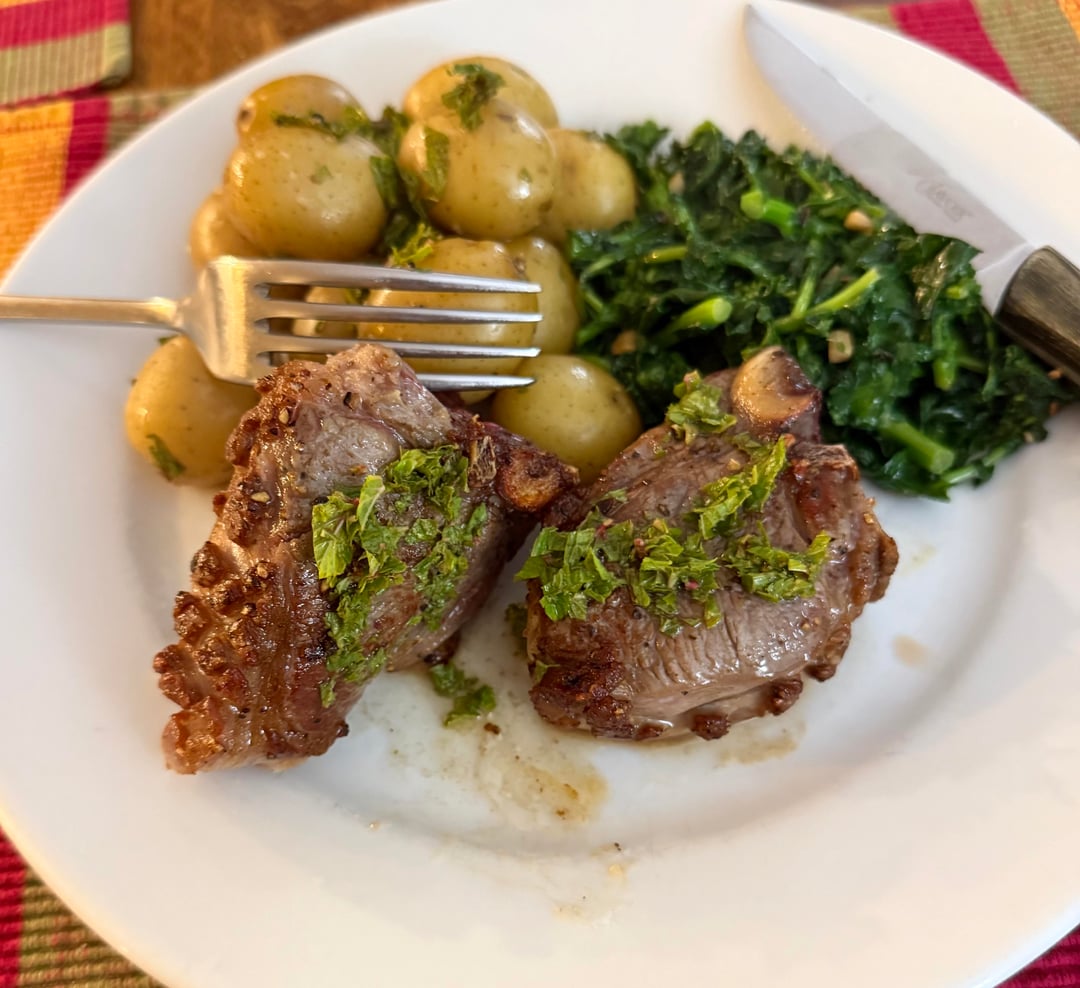 Lamb chops with fresh mint sauce, rapini, and baby potatoes! by oswan Dinner Tonight Tonight's Dinner