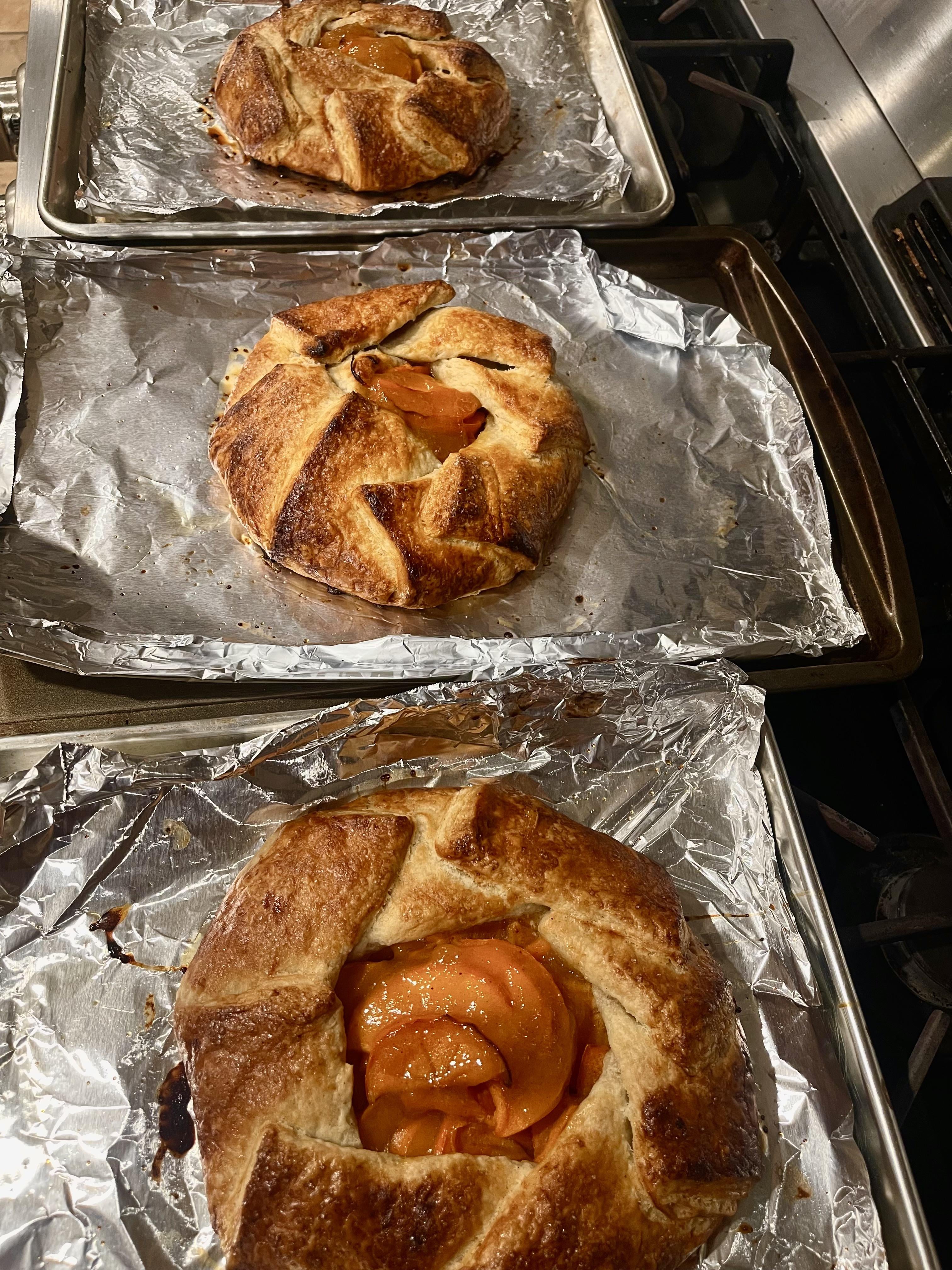 Pie dough from scratch and some orange preserves at the base. Made these at home so i guess you call it rustic lol