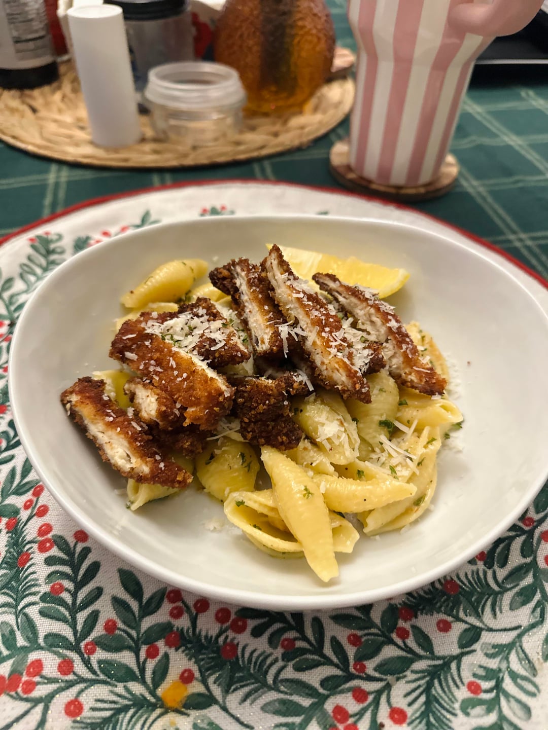 This week we had Chicken Cutlets with Shells Aglio e Olio (garlic and oil) – so quick and tasty; we also had Ribeye Fajitas with Rice, Grilled Chicken Caesar Salads, and marinated skirt steak with garlic-Parmesan potatoes.