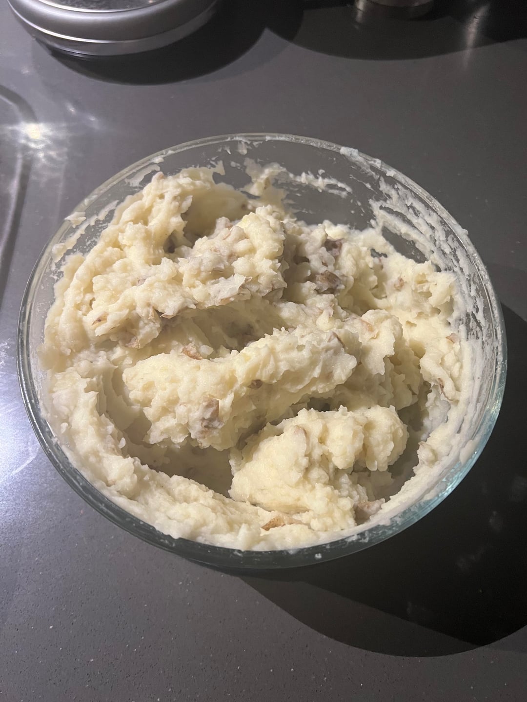 Mashed potatoes I’m too lazy to pull out the hand mixer so I just mash and mix them with a fork. Continue doing the same as I add in butter, salt, and milk to taste.