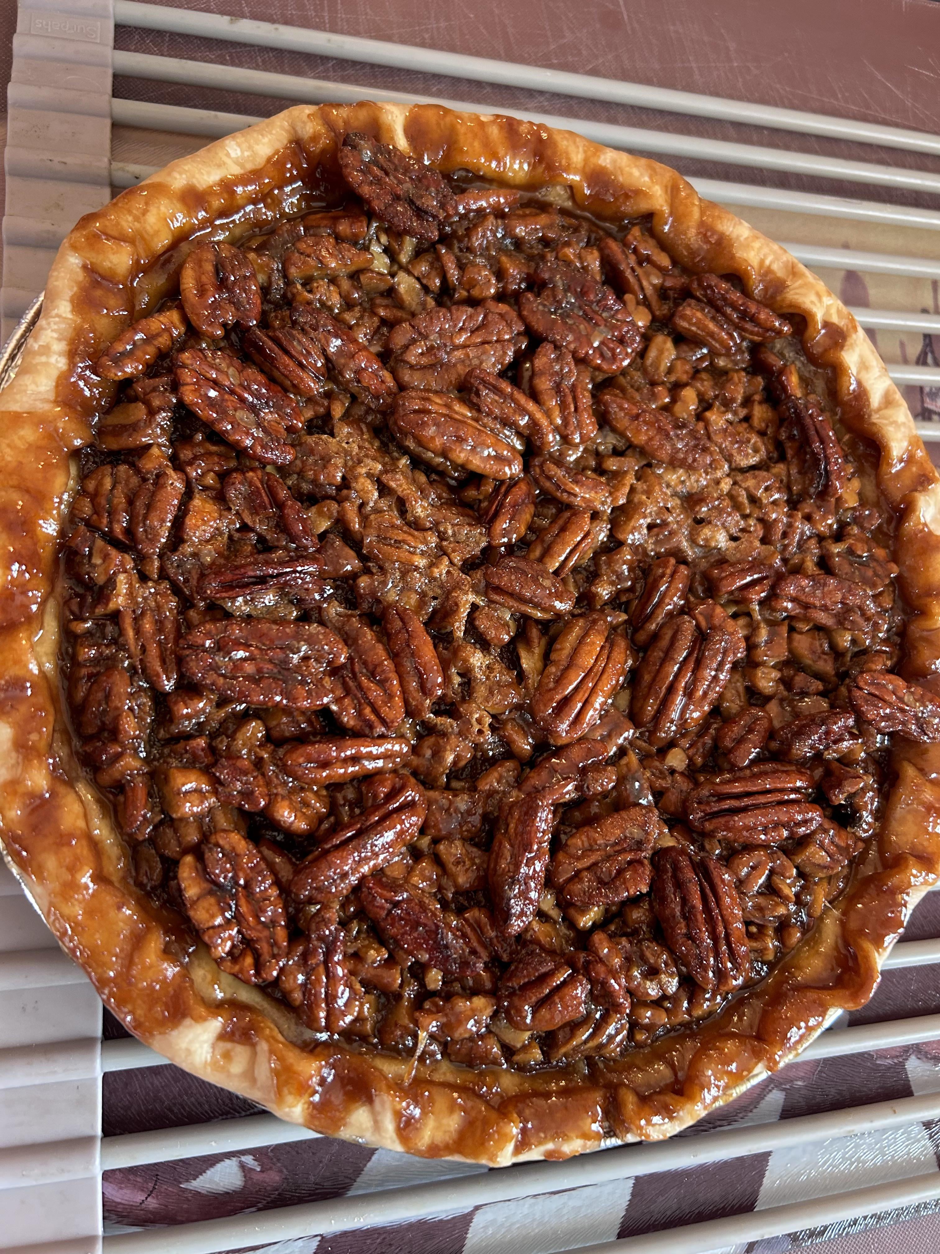 Soaked the pecans for hour in Balcones tequila barrel aged whisky, chopped some up for the filling. The rest I cook in a blend of honey, brown sugar, and butter: to pour over top for last bit of cooking. by Cryptic_254 Food Porn